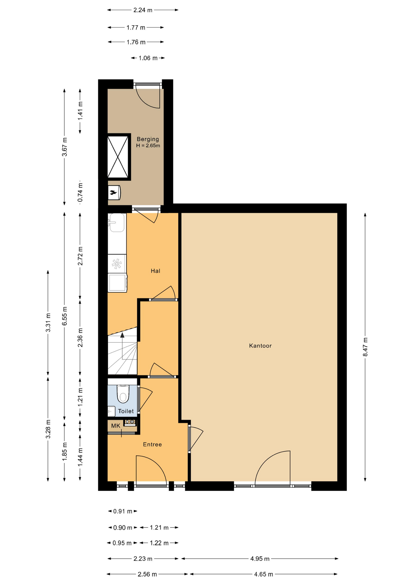 Bij binnenkomst vindt u de kantoorruimte, die voldoende gelegenheid biedt voor zakelijke activiteiten. Of het nu gaat om een eigen bedrijf, een praktijk of een thuiskantoor, de ruimte is flexibel in te richten en biedt tal van mogelijkheden.