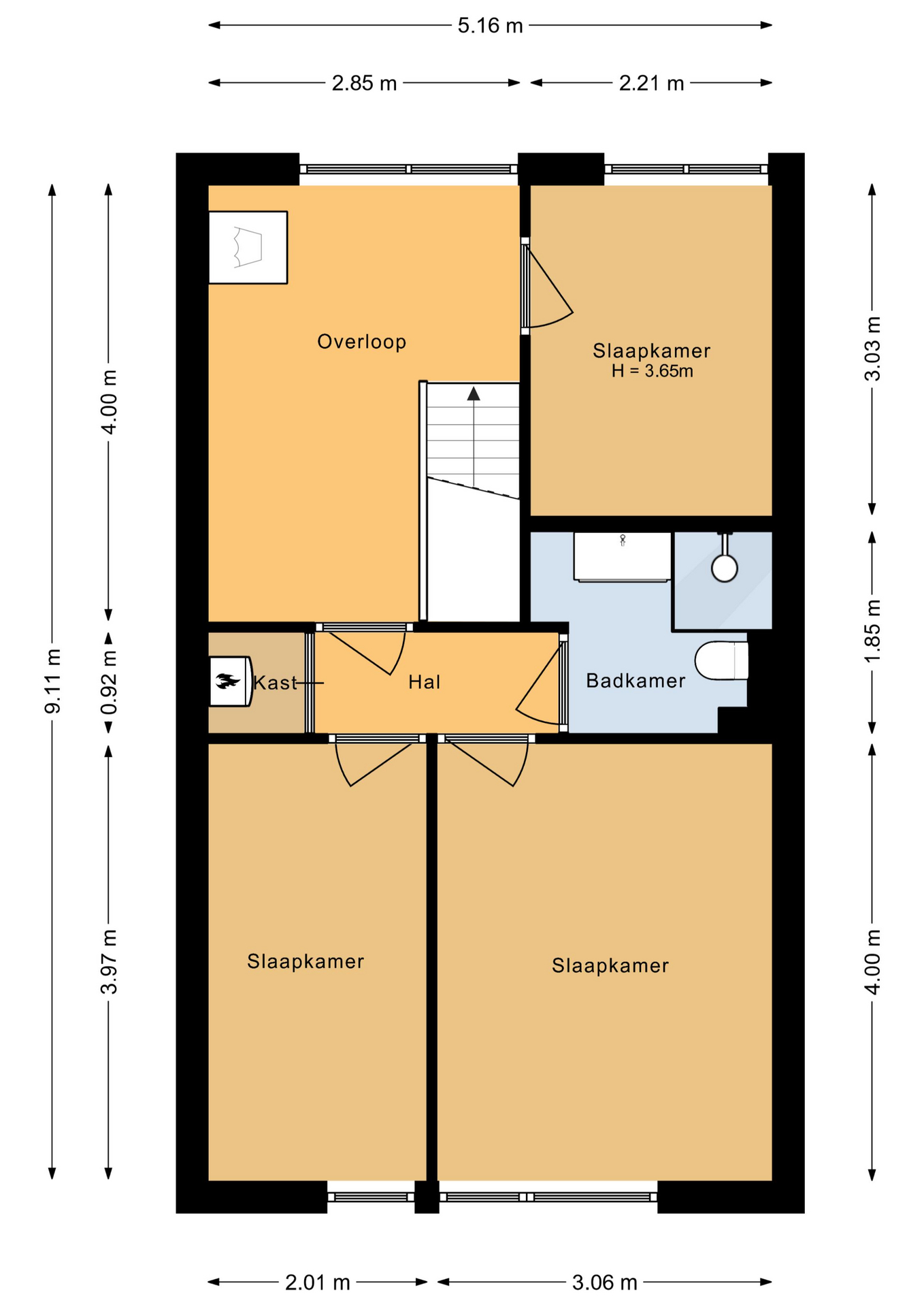 Op de bovenverdieping vindt u drie goed bemeten slaapkamers die flexibiliteit bieden voor bijvoorbeeld een thuiskantoor, hobbyruimte of logeerkamer. De moderne badkamer is een fijne plek om uw dag te beginnen of af te sluiten, met een stijlvolle en eigentijdse afwerking.