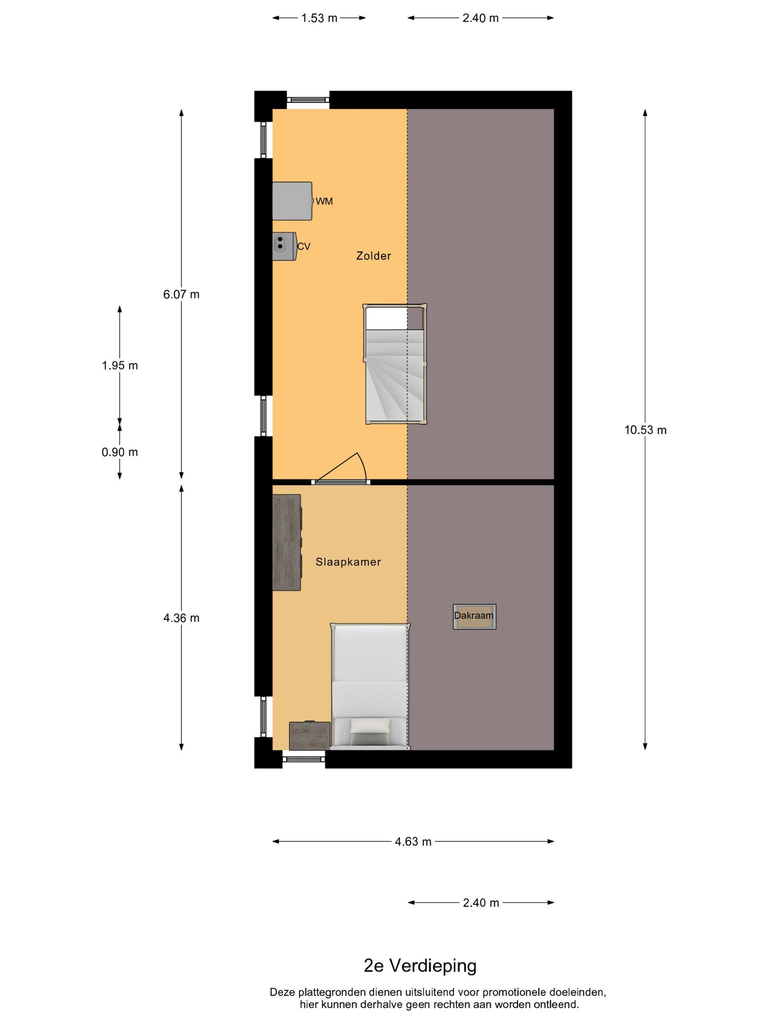 Ruime overloop met opstelling CV-ketel en wassen/drogen, vierde slaapkamer (ca. 7 m²) voorzien van dakraam.