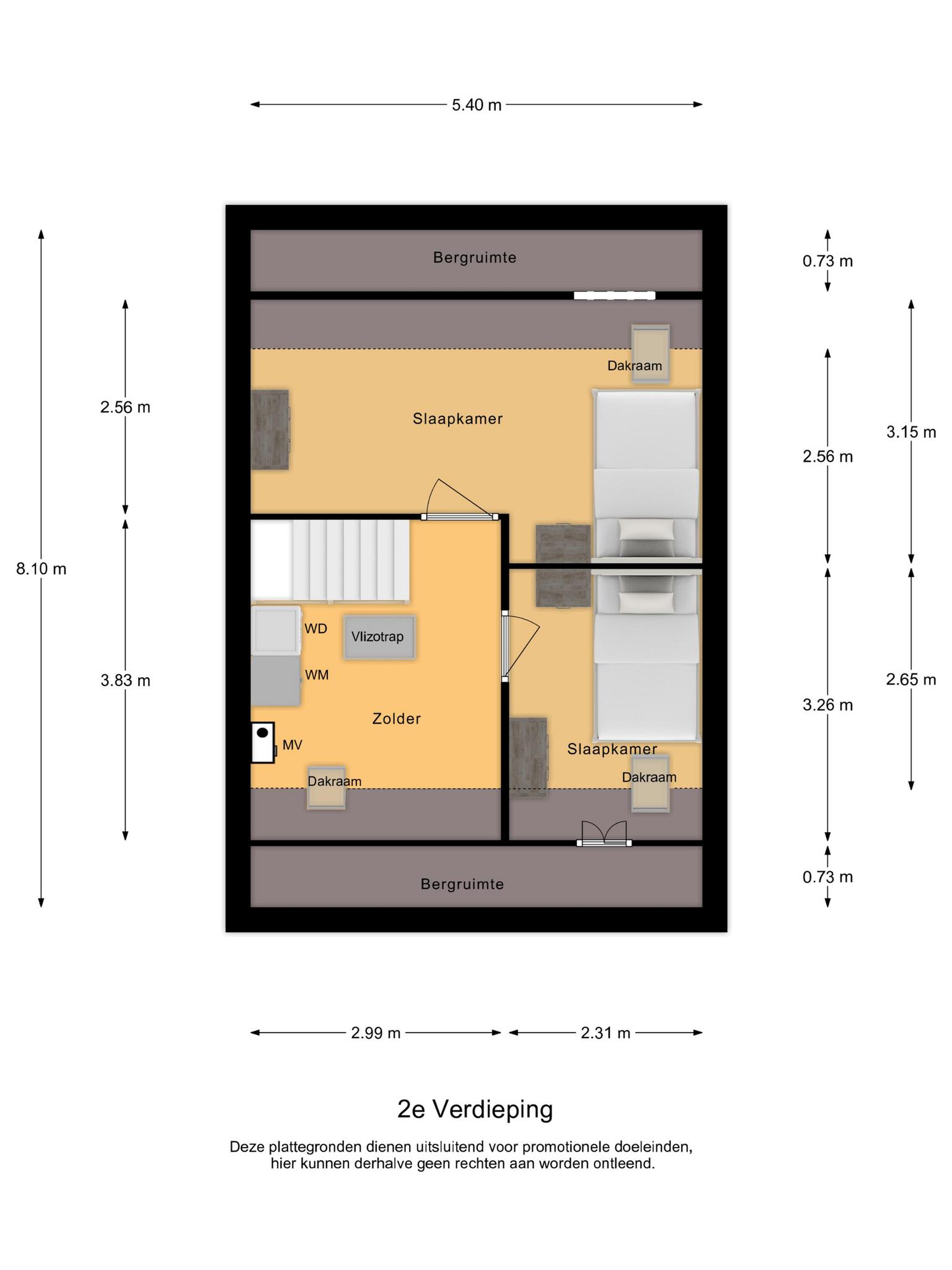Ruime overloop met met dakraam, opstelling wassen/drogen en mechanische ventilatie, vlizotrap naar zolder, slaapkamer 4 (ca. 14 m²) voorzien van dakraam en bergruimte, slaapkamer 5 (ca. 8 m²) voorzien van dakraam en bergruimte.