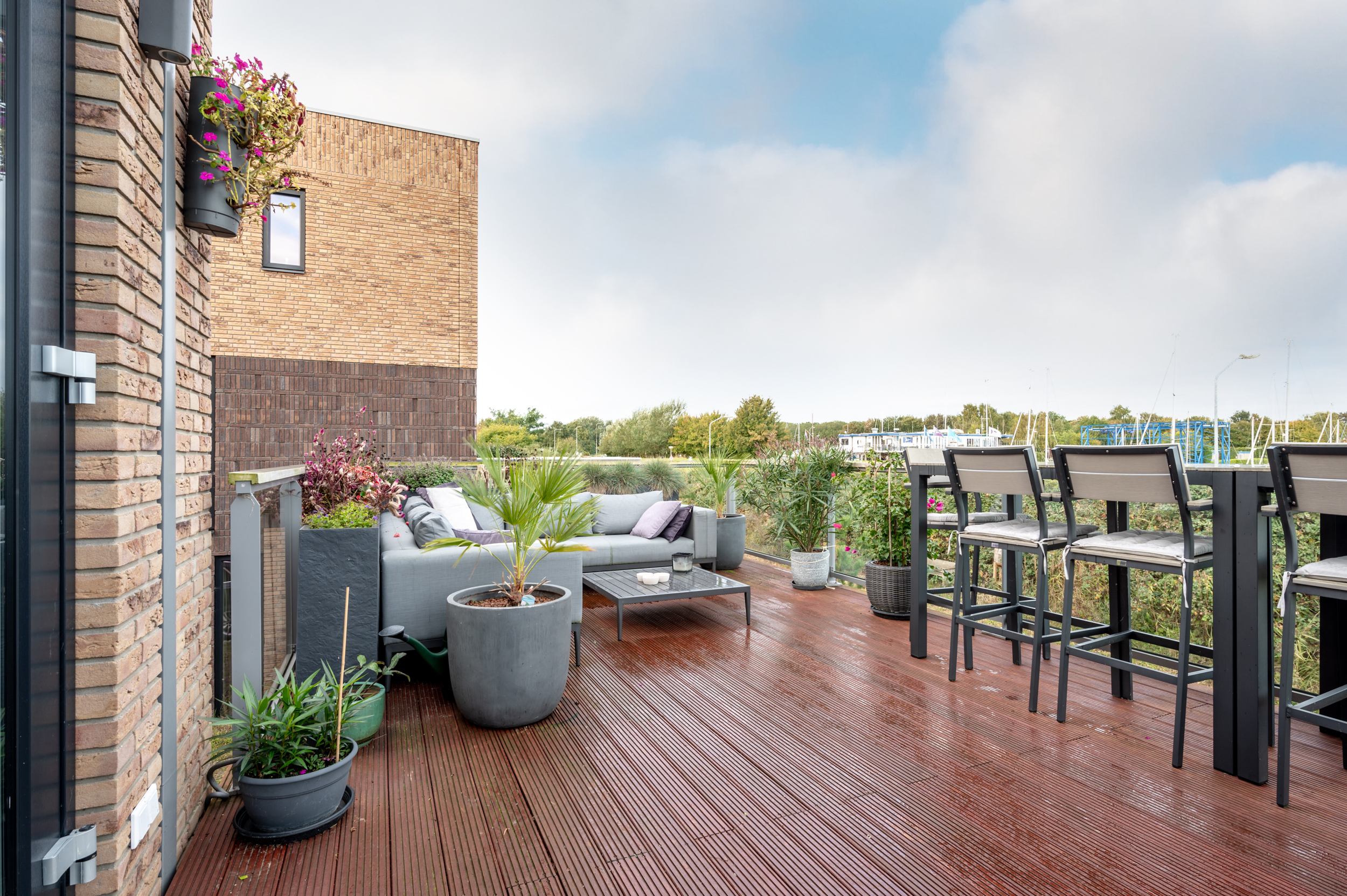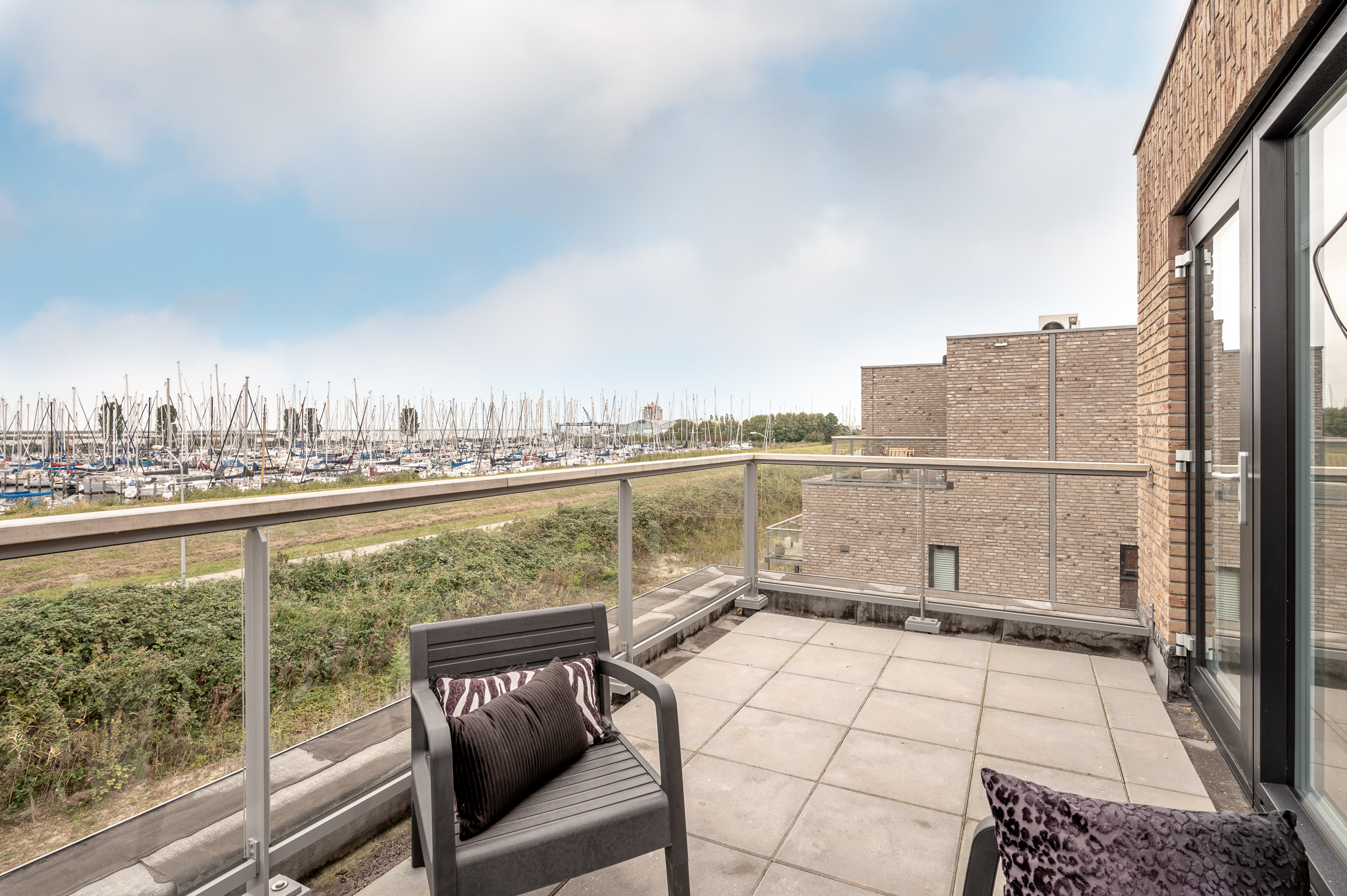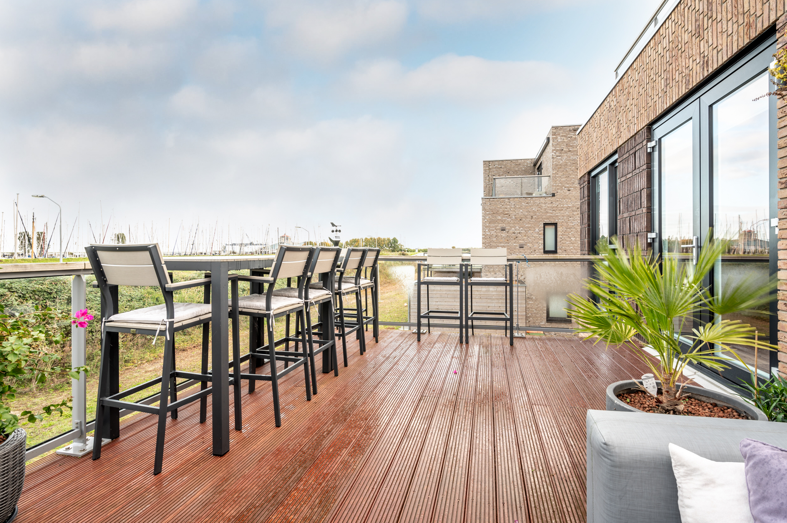 * De woning is voorzien van 2 dakterrassen (ca. 26 en 12 m2) met een ligging op het noordwesten en een heerlijk vrij uitzicht over de Houtribhaven en het groen!