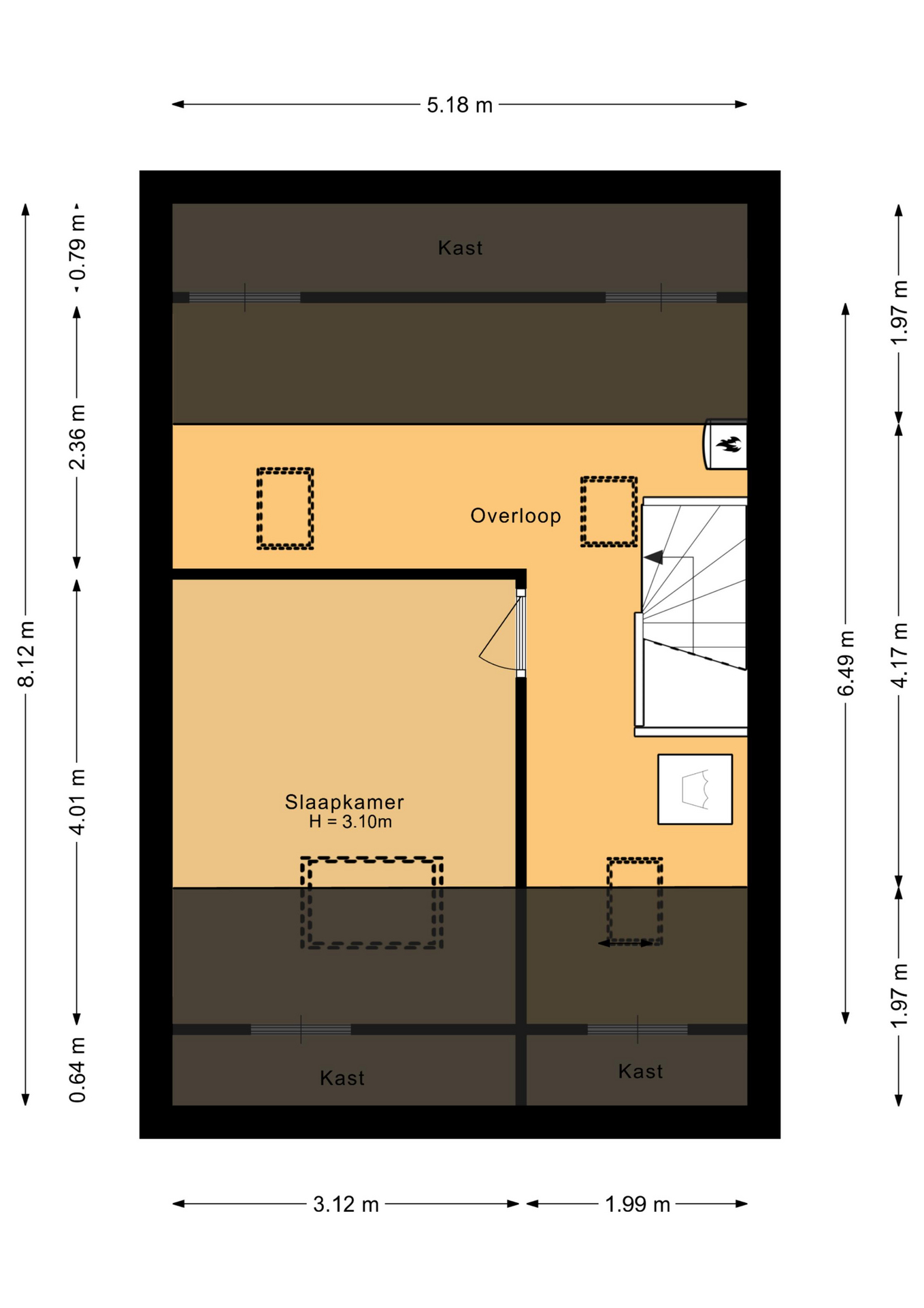 Ruime overloop voorzien van dakramen en opbergruimte, opstelling CV, opstelling wassen en drogen, slaapkamer 4 (ca. 12 m²) voorzien van dakraam en opbergruimte.