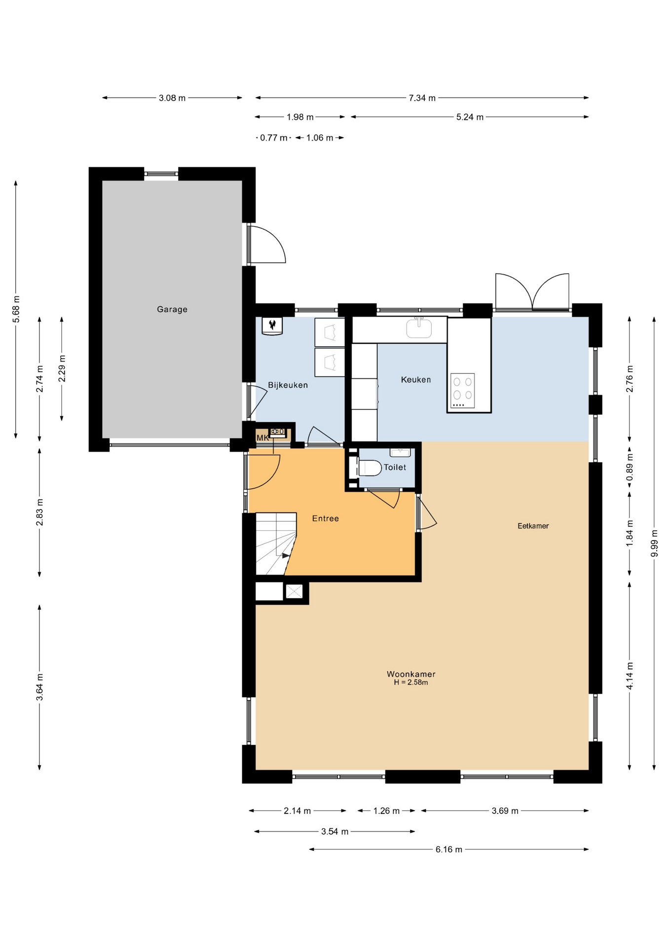 * De begane grond is voorzien van glad gestuukte wanden en plafonds en een fraaie houten vloer (m.u.v. de bijkeuken)