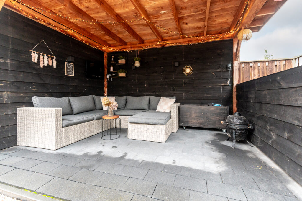 * Fraai aangelegde tuin met een ligging op het oosten en een schitterende houten overkapping!