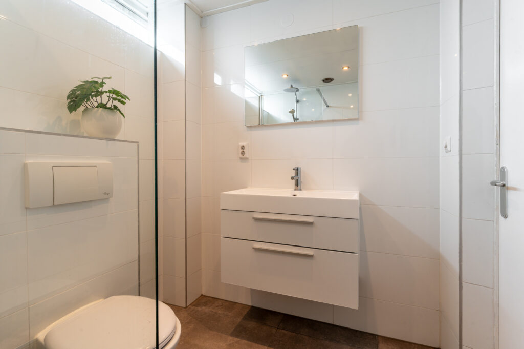 Overloop met de opstelplaats van de cv-ketel (2018 / huur), een praktische bergkast en toegang tot 3 ruime slaapkamers (ca. 16 / 12 / 9 m2), waarbij de slaapkamer aan de voorzijde is voorzien van een ingebouwde kastenwand en de wasmachineaansluiting. Moderne badkamer (2020) met een (inloop)douche, 2e toilet, wastafelmeubel, een designradiator en een raam voor de natuurlijke ventilatie. De verdieping is voorzien van een laminaatvloer.