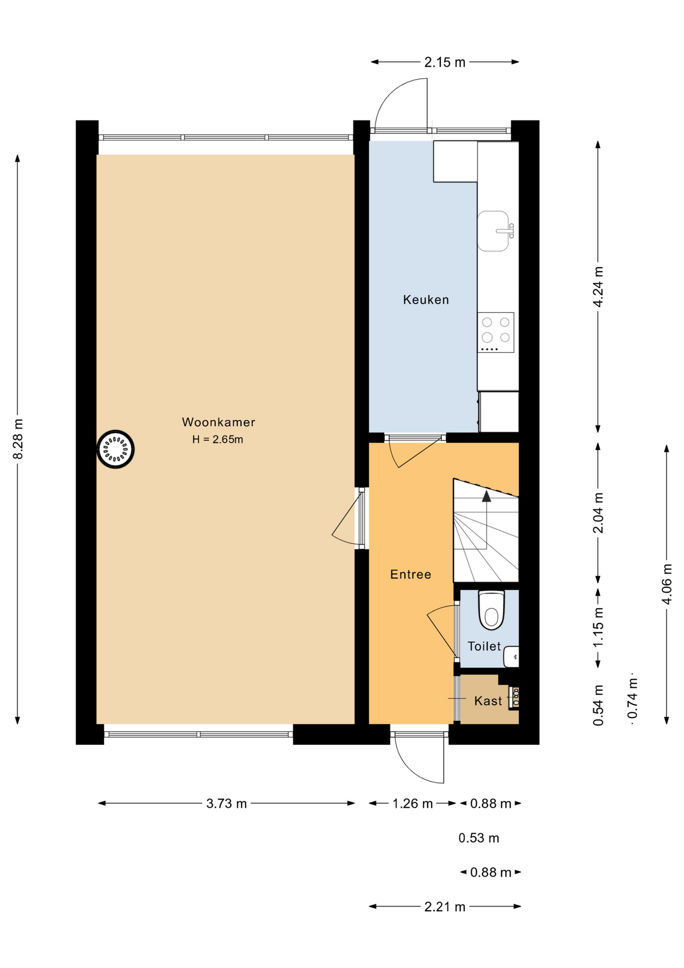 * Een heerlijke ruime woonkamer van ca. 31 m2, welke zowel tuingericht alsmede straatgericht kan worden ingericht