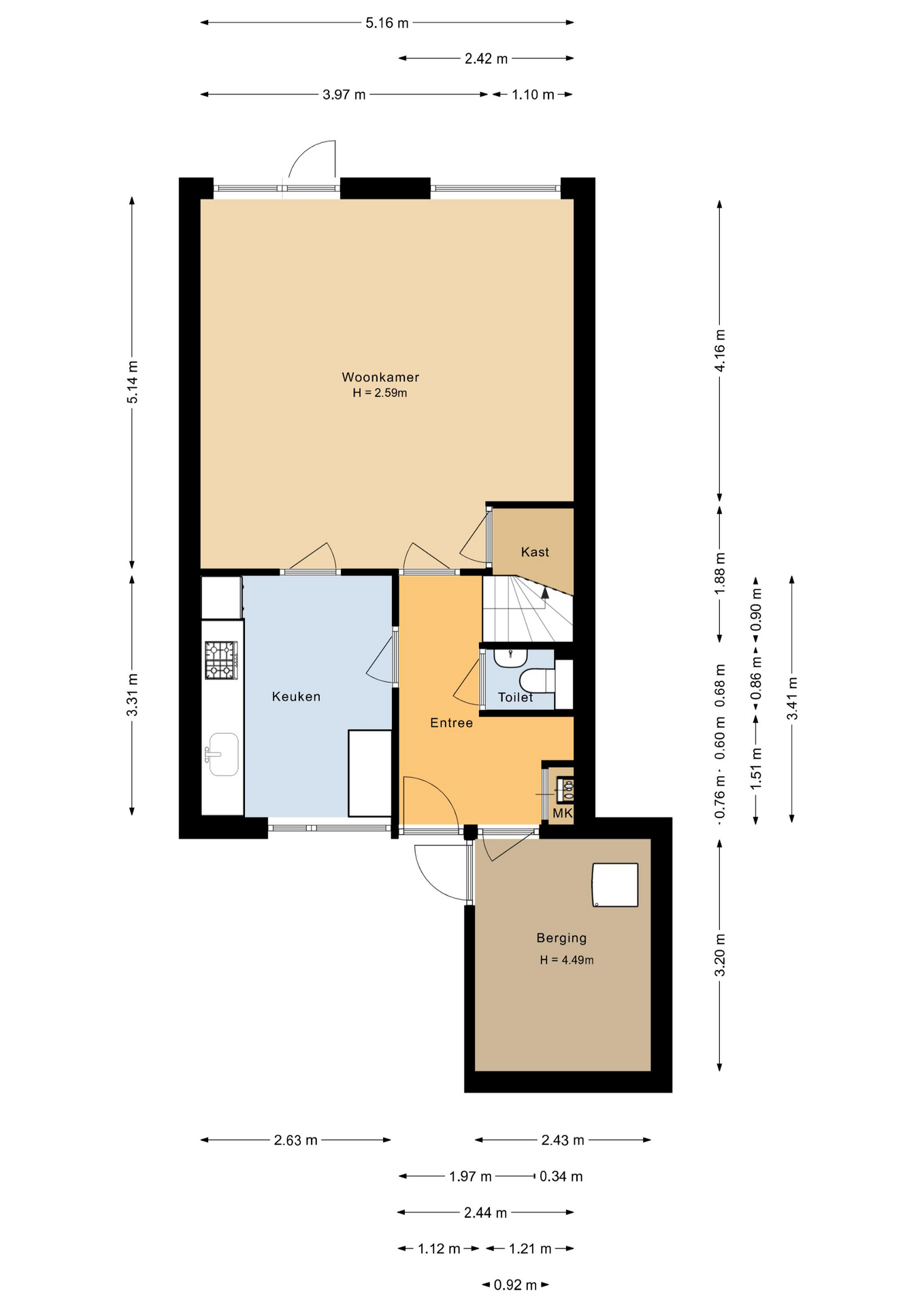 Entree/hal met meterkast, garderobe, toiletruimte, trapopgang naar de verdieping en toegang naar de keuken, woonkamer en aangebouwde stenen berging met deur naar de voortuin. Een heerlijke tuingerichte woonkamer met grote raampartijen, een praktische bergkast en een deur naar de tuin. Ruime opstelmogelijkheden voor een grote eettafel, waar u heerlijk kunt dineren. Aan de voorzijde treft u de inbouwkeuken in dubbele opstelling, welke voorzien is van diverse inbouwapparatuur. De begane grond is deels voorzien van een laminaatvloer en deels van een plavuizen vloer.