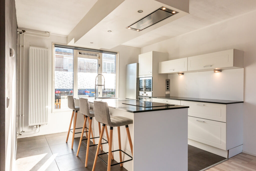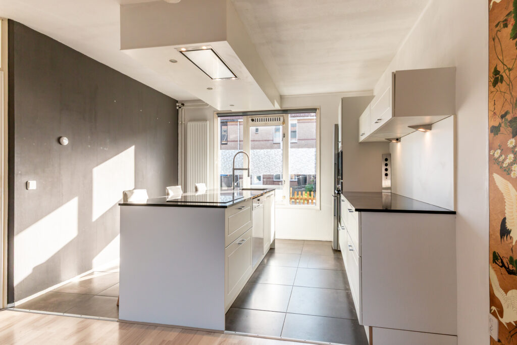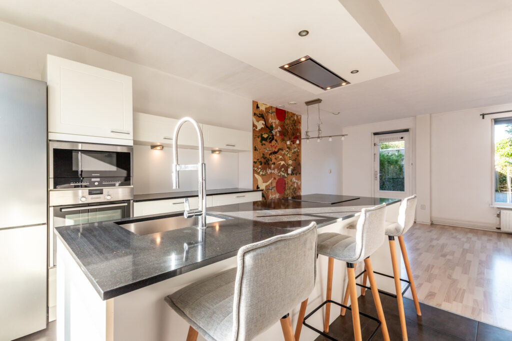 * De woning is voorzien van een fraaie inbouwkeuken met kookeiland en een moderne badkamer (2020)
