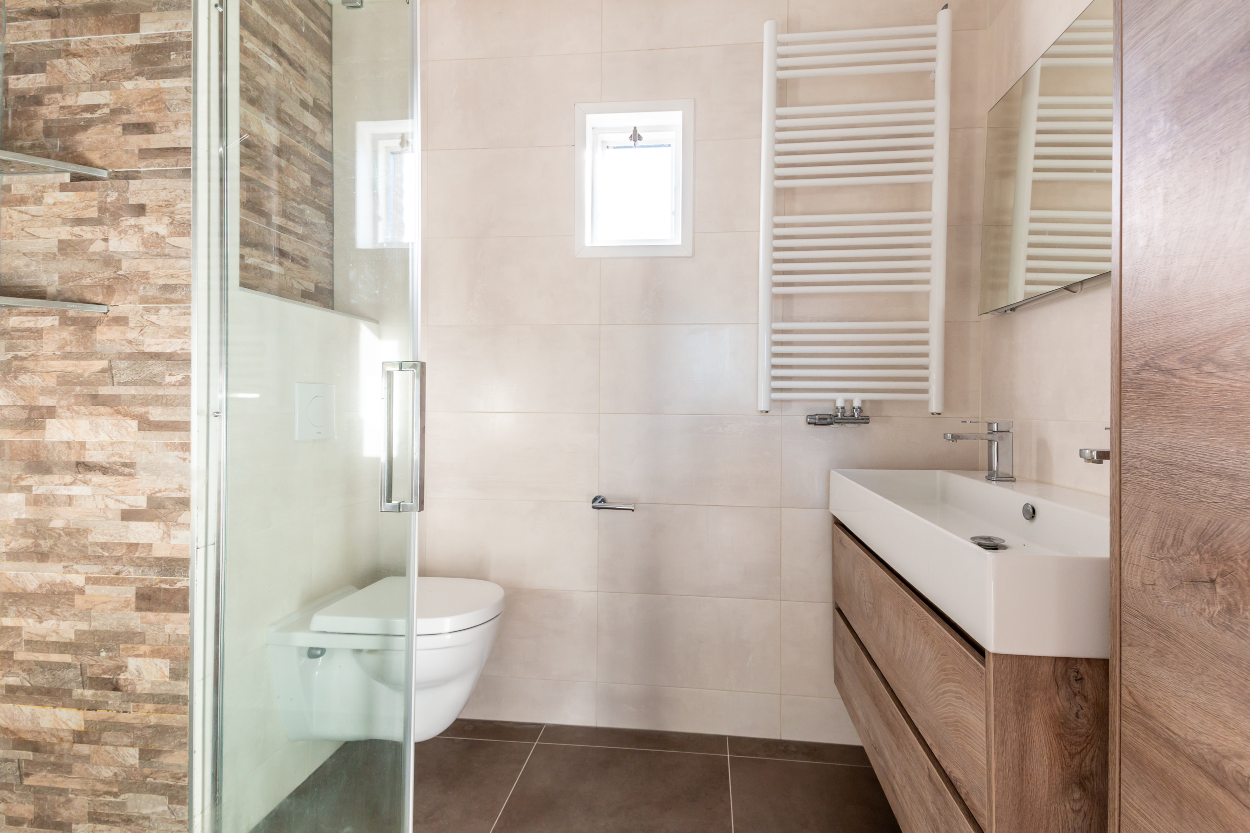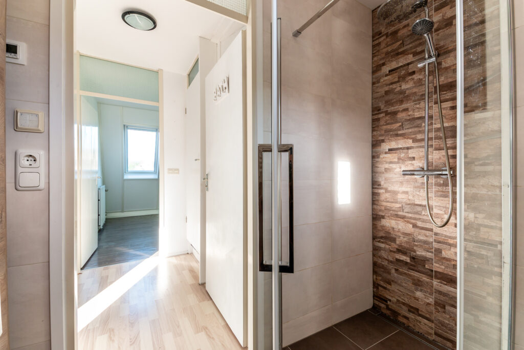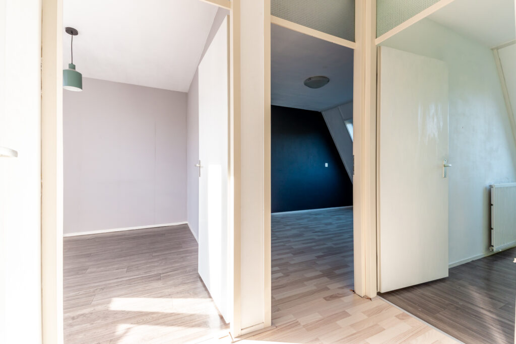 Overloop met 3 ruime slaapkamers en een badkamer. Slaapkamer één gelegen aan de voorzijde van de woning, slaapkamer twee, de masterbedroom, met veel lichtinval door het in 2018 geplaatste dakraam en slaapkamer drie gelegen aan de achterzijde van de woning. De modern ingerichte badkamer (2020) is volledig betegeld en uitgerust met vrijdragend closet, inloopdouche met regen- en handdouche en glazendeur, dubbel wastafelmeubel en designradiator. De badkamer is voorzien van een vloerverwarming en mechanische ventilatie.