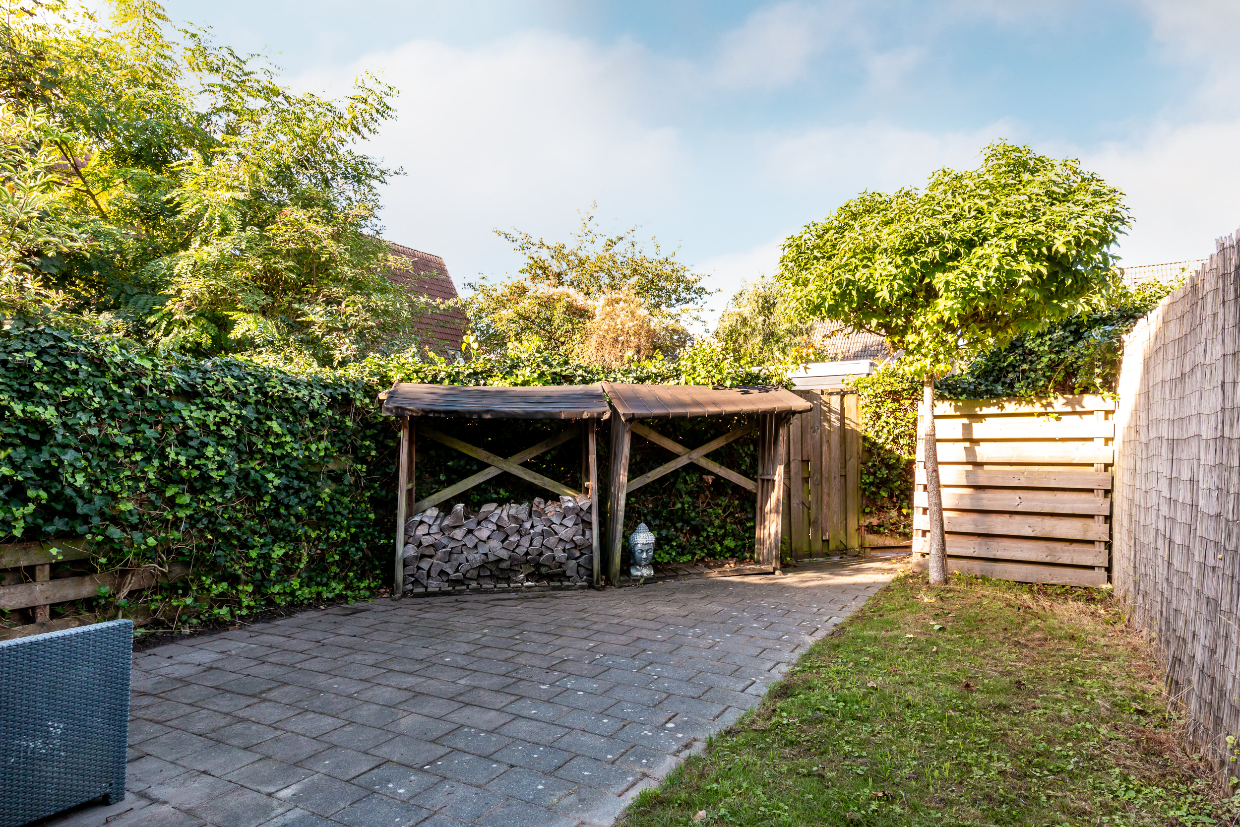 * Zonnige achtertuin met een ligging op het westen, voorzien van diverse zitjes en een vrijstaande stenen berging