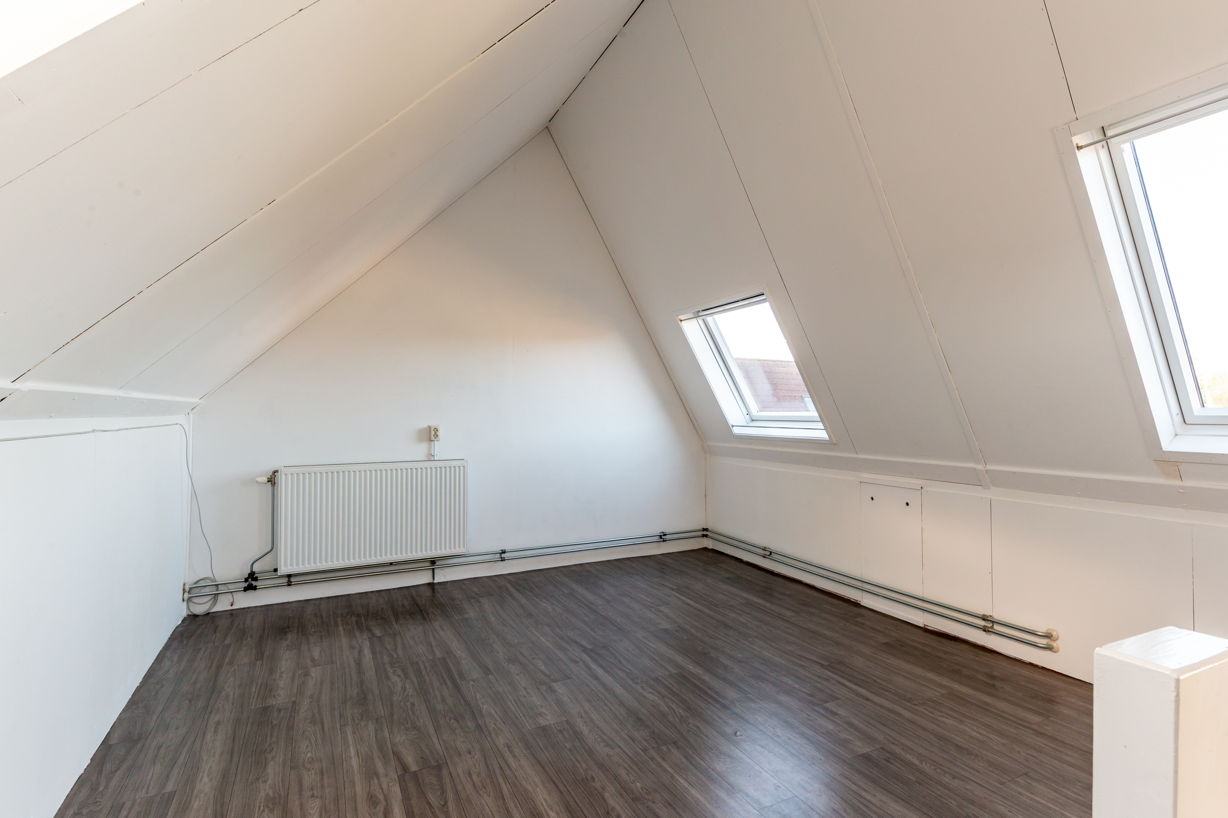 Via vaste trap te bereiken open zolderruimte met aansluiting voor de wasmachine en droger. De zolder heeft veel licht inval door de diverse dakramen, zo maakt u van deze ruimte een ideale thuiswerkplek of 4e slaapkamer. De zolder beschikt over voldoende bergruimte achter knieschotten.
