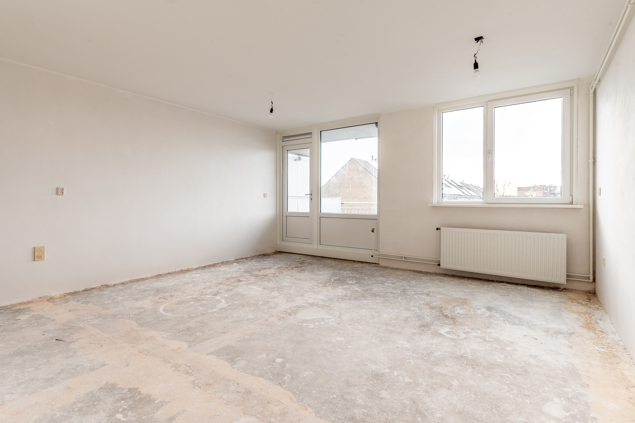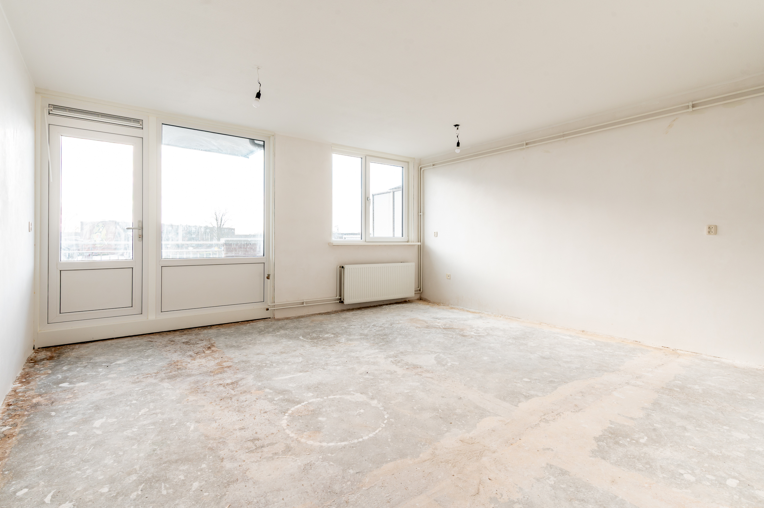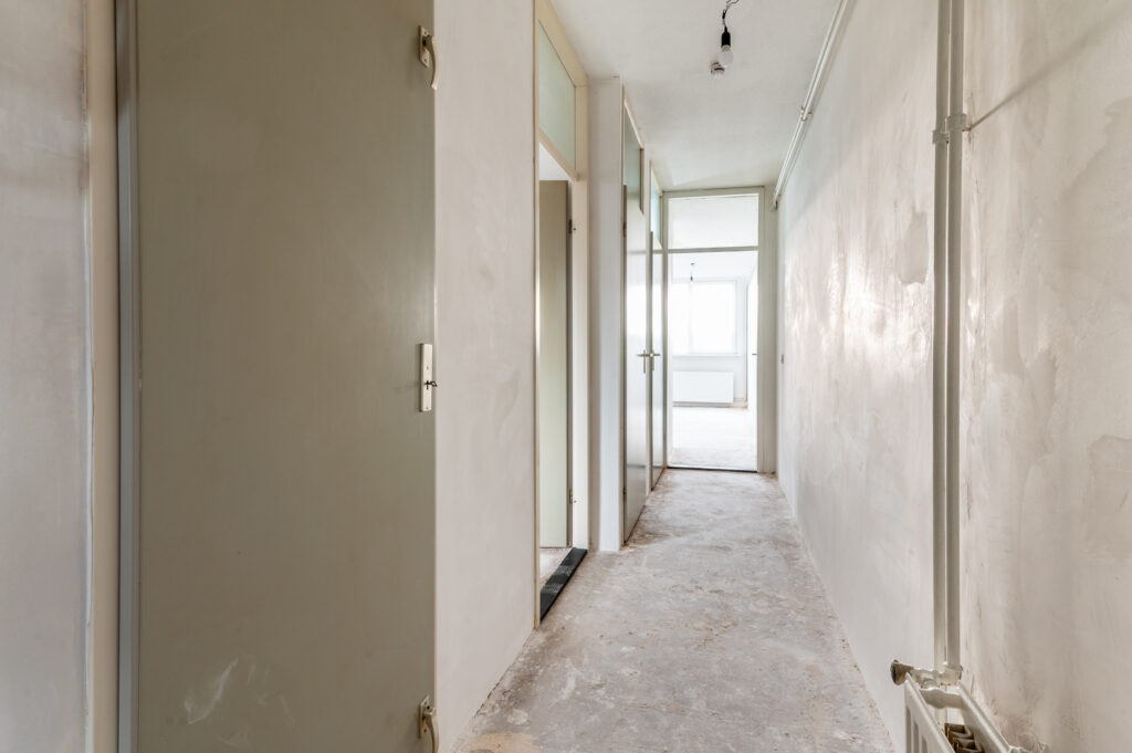 Verder beschikt de woning over een royale woon-/eetkamer met open keuken waaruit het oude keukenblok reeds is verwijderd waardoor u hier eenvoudig en geheel naar eigen smaak een prachtige nieuwe hoekkeuken kunt realiseren. Ditzelfde geldt voor de vloerafwerking en daarnaast zijn alle wanden recent strak gestuukt dus wie weet zit u hier binnenkort heerlijk te dineren met vrienden of familie!