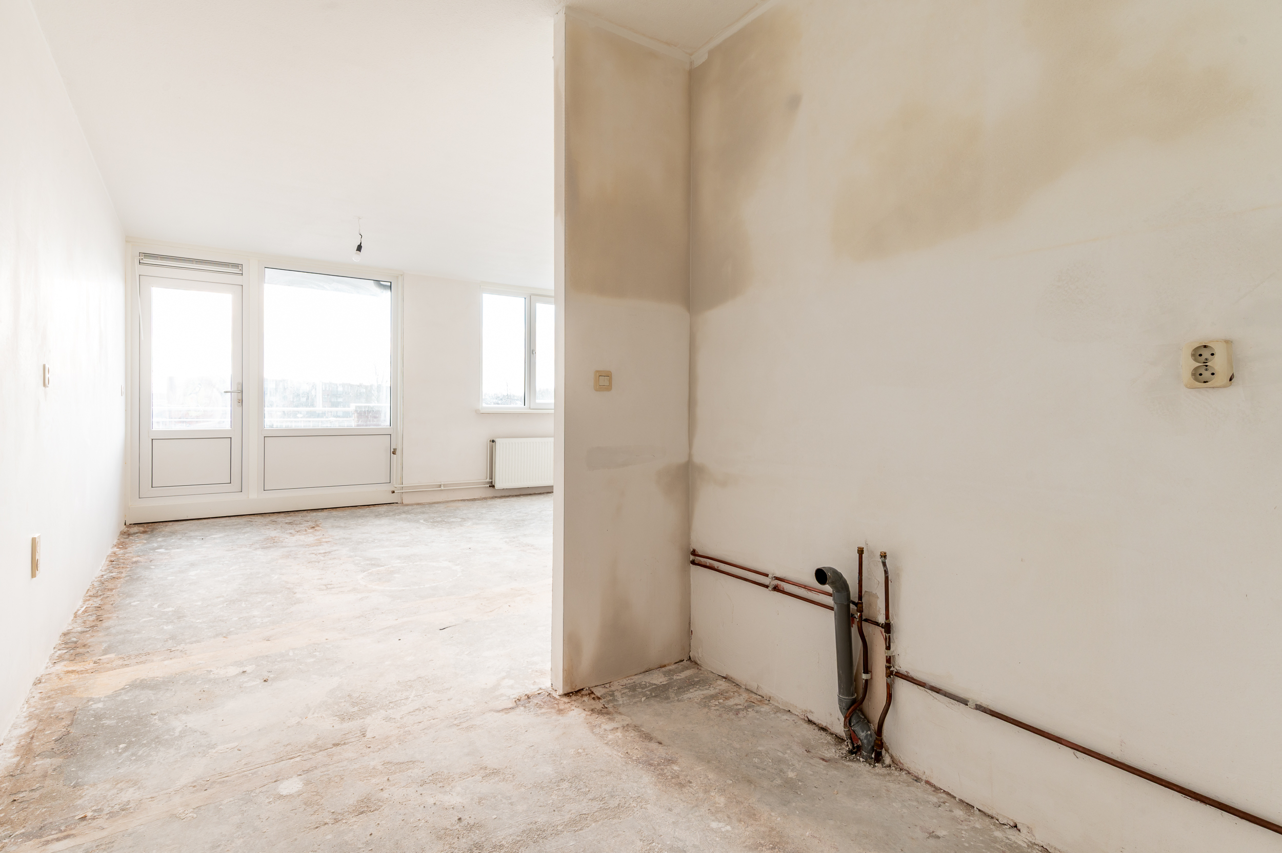 * Het oude keukenblok en de vloerafwerking zijn reeds verwijderd, waardoor sloopwerk niet meer nodig is;