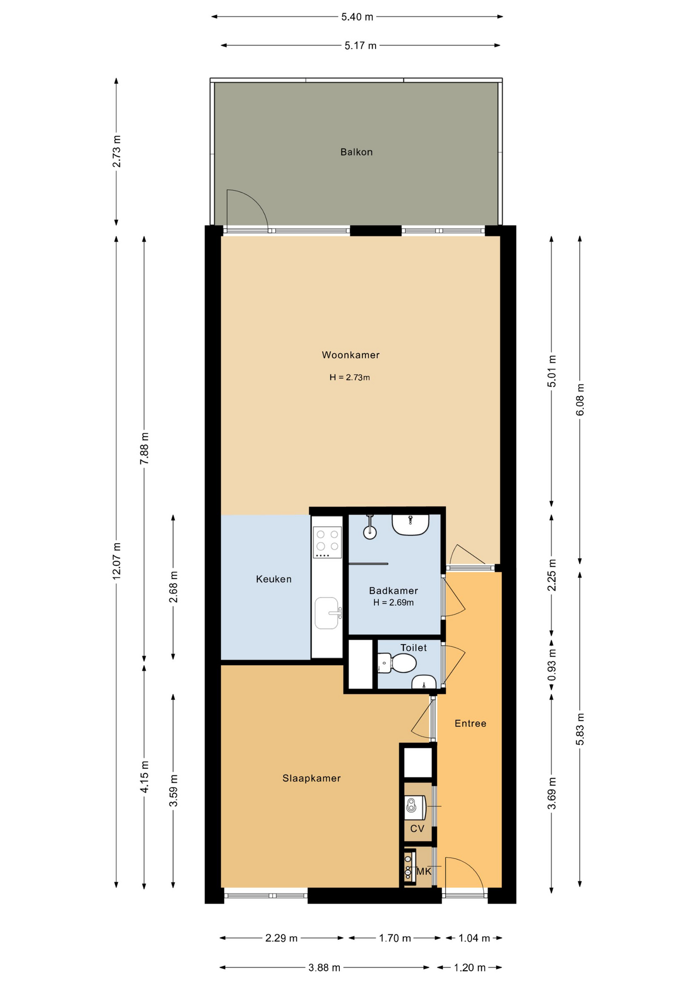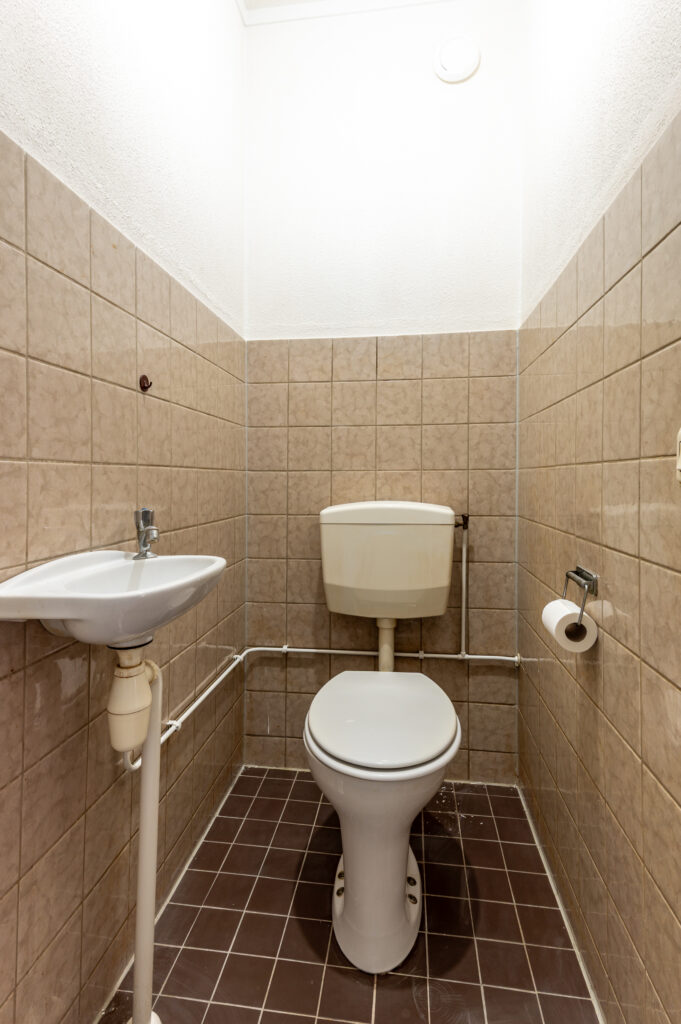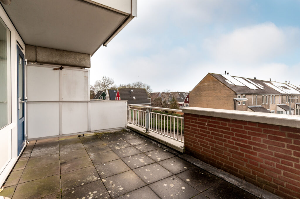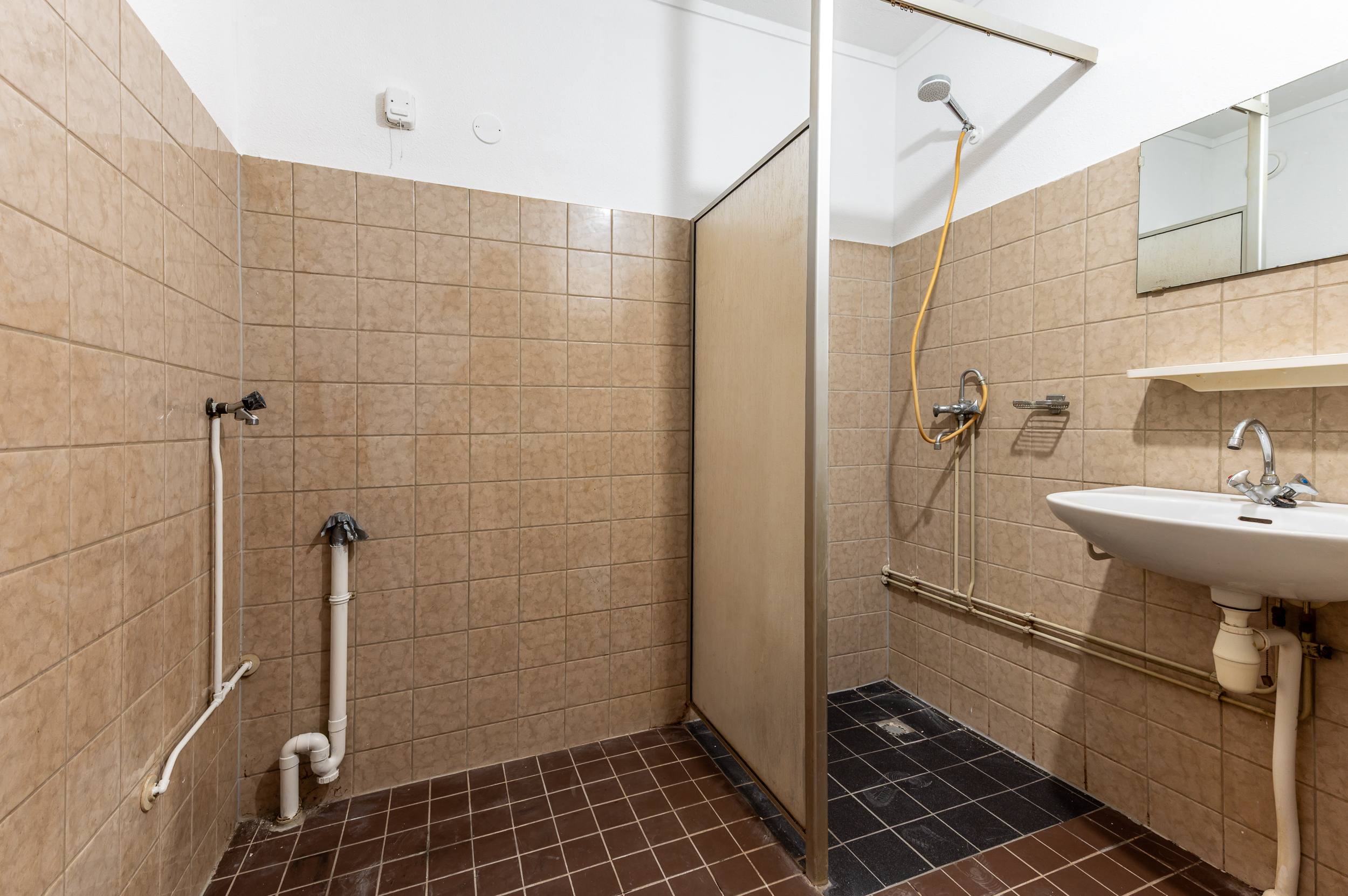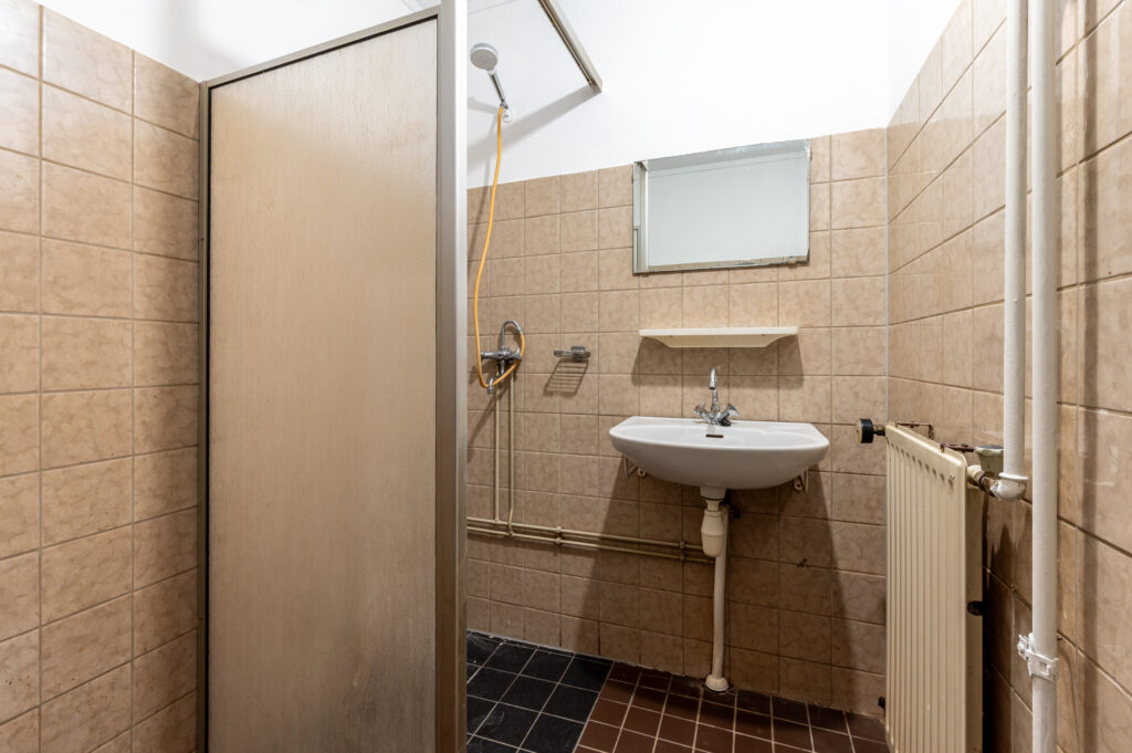 Hal met meterkast en kastruimte met opstelplaats voor de cv-ketel, ruime slaapkamer (ca. 12 m²), toiletruimte met fonteintje, badkamer voorzien van een inloopdouche, wastafel, radiator en een wasmachine-aansluiting, royale woonkamer met open keuken en toegang tot het ruime terras.