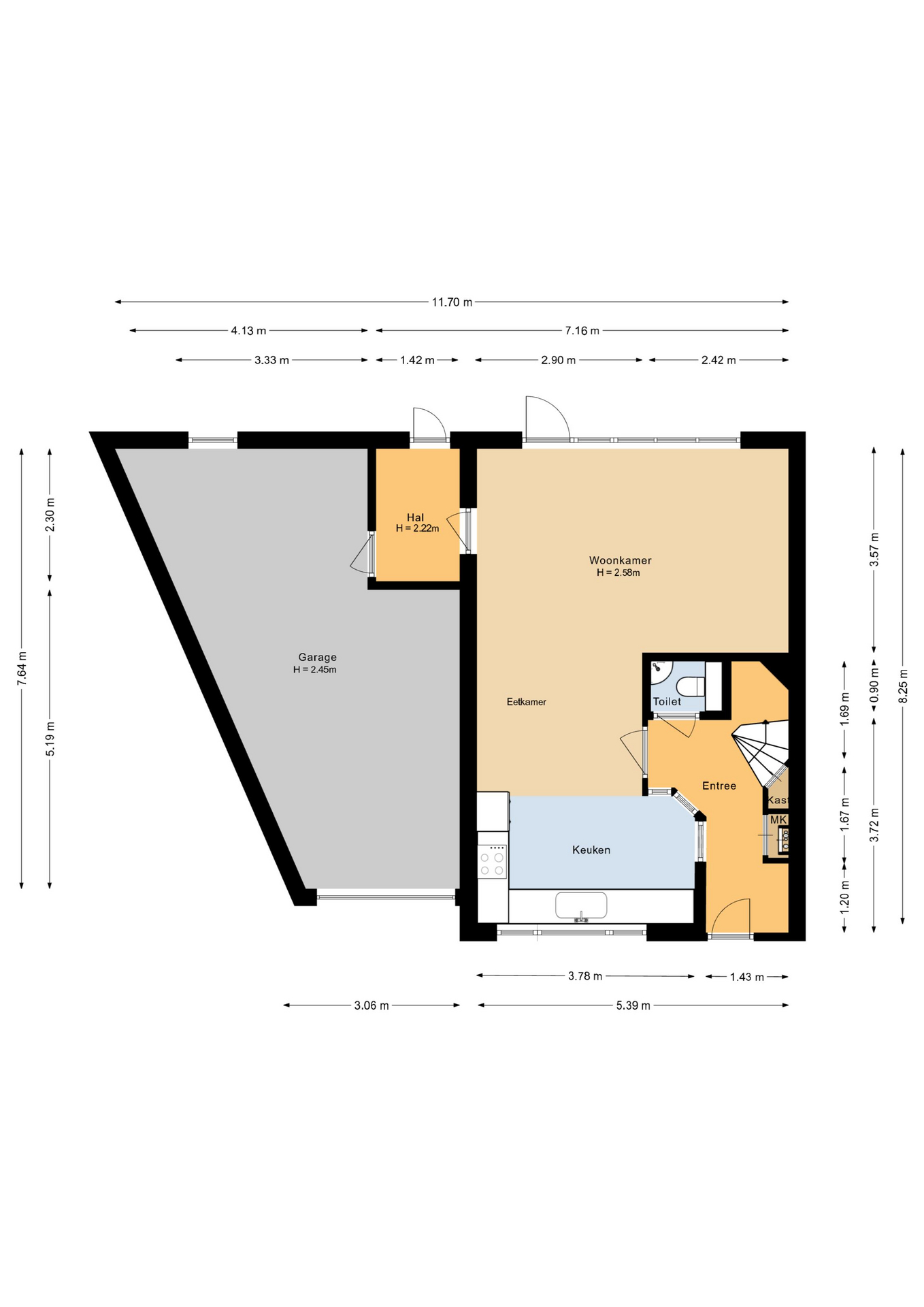 * Kaveloppervlak: 374 m2 eigen grond