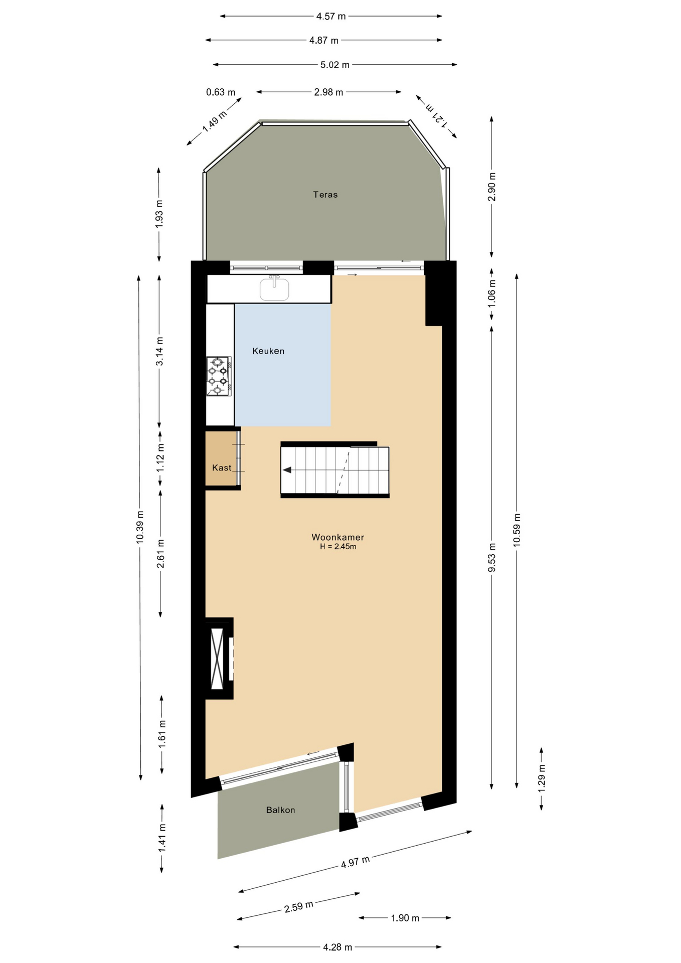 1e Verdieping: (woonverdieping)