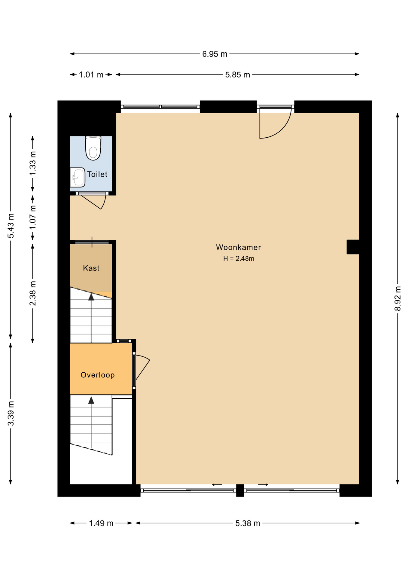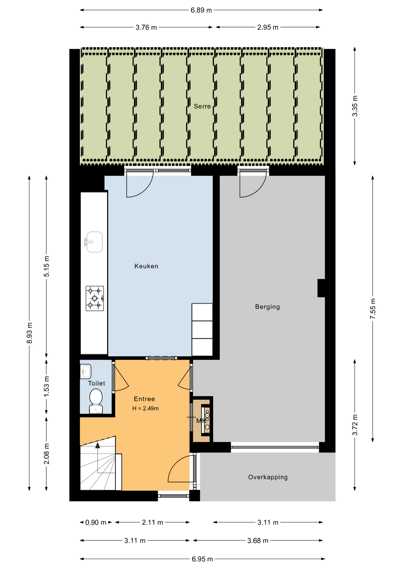 Entree/hal met de meterkast, toiletruimte, trapopgang naar de verdieping en toegang naar de woonkeuken en de inpandige garage (ca. 24 m2). De garage is voorzien van een nieuwe elektrische garagedeur (2021), veel praktische bergruimte en een deur naar de tuin. De garage kan eventueel worden omgebouwd naar een praktijkruimte of kan dienen als extra woonruimte. Aan de achterzijde bevindt zich de sfeervolle woonkeuken met een moderne inbouwkeuken in dubbele opstelling, welke voorzien is van de volgende apparatuur; koelkast, vriezer, vaatwasser, oven, 5-pits gaskookplaat (incl. wokbrander) en een afzuigkap. De begane grond is voorzien van een fraaie tegelvloer in antracieten kleurstelling.