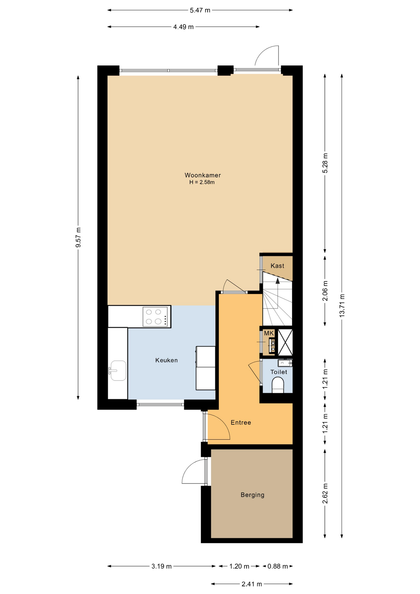 Entree/hal met de garderobe, toiletruimte, meterkast, trapopgang naar de verdieping en toegang naar de woonkamer. Een heerlijke tuingerichte woonkamer van 5.47 m. breed met grote raampartijen (veel lichtinval), een praktische trapkast en een deur naar de tuin. Aan de voorzijde bevindt zich de luxe inbouwkeuken, welke is voorzien van de volgende apparatuur; koelkast, vriezer, vaatwasser, combi-oven (2x) en een 4-pits inductiekookplaat met een geïntegreerde afzuigkap. Ruime opstelmogelijkheden voor een grote eettafel, waar u heerlijk met vrienden en familie kunt dineren. De begane grond is voorzien van glad gestuukte wanden en plafonds en een fraaie laminaatvloer.