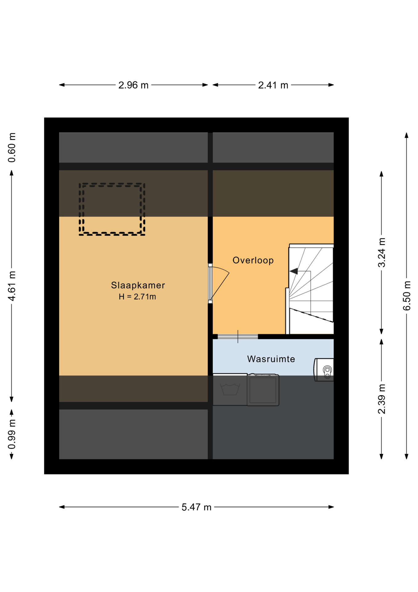 Overloop, aparte ruimte met opstelling wassen-/drogen en CV-ketel, vierde slaapkamer (ca. 14 m²) voorzien van dakraam.