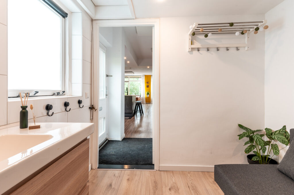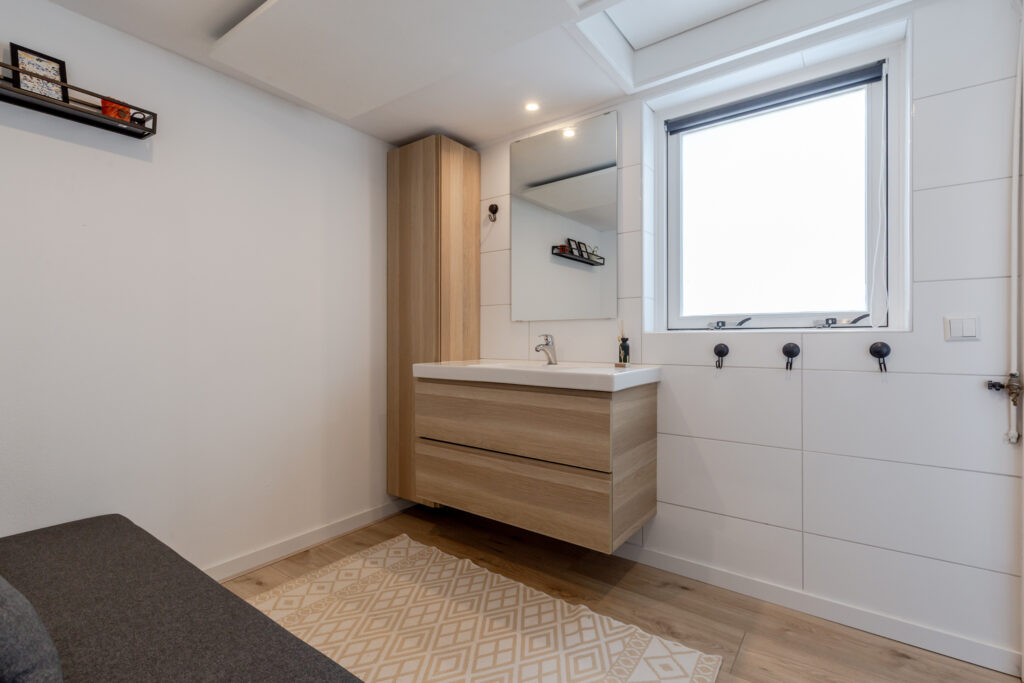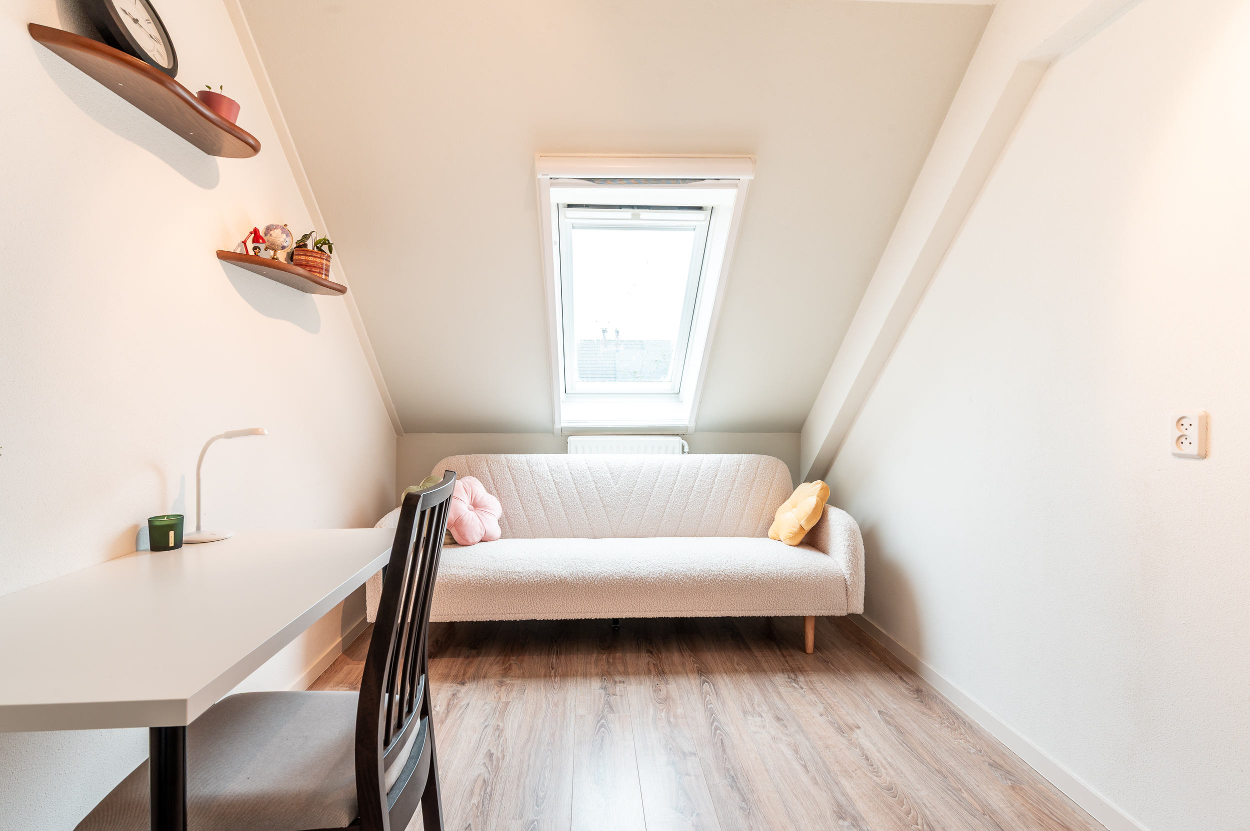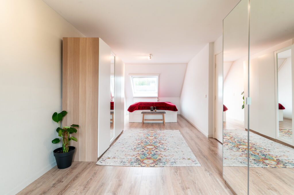 De woning beschikt over in totaal vier slaapkamers, waarvan één op de begane grond. Op de eerste verdieping bevinden zich twee ruime slaapkamers en de moderne badkamer met toilet, wastafelmeubel, inloopdouche en natuurlijke ventilatie. De vierde slaapkamer ligt op de tweede verdieping, die tevens extra bergruimte biedt.