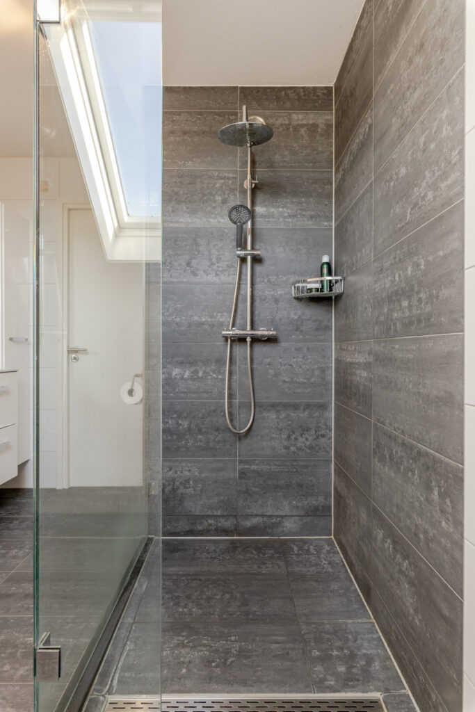 Overloop, slaapkamer twee (ca. 25 m²) voorzien van dakraam, slaapkamer drie (ca. 10 m²) voorzien van dakraam, moderne badkamer voorzien van toilet, wastafel met meubel, inloopdouche en natuurlijke ventilatie.