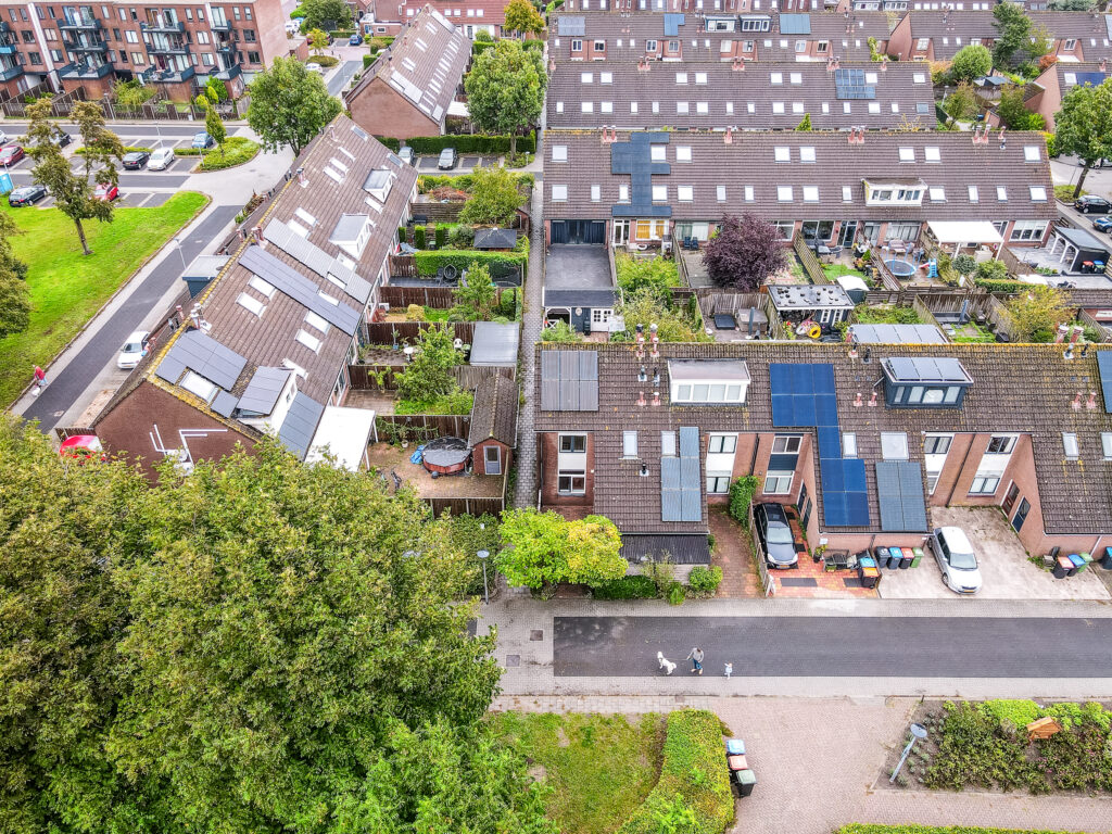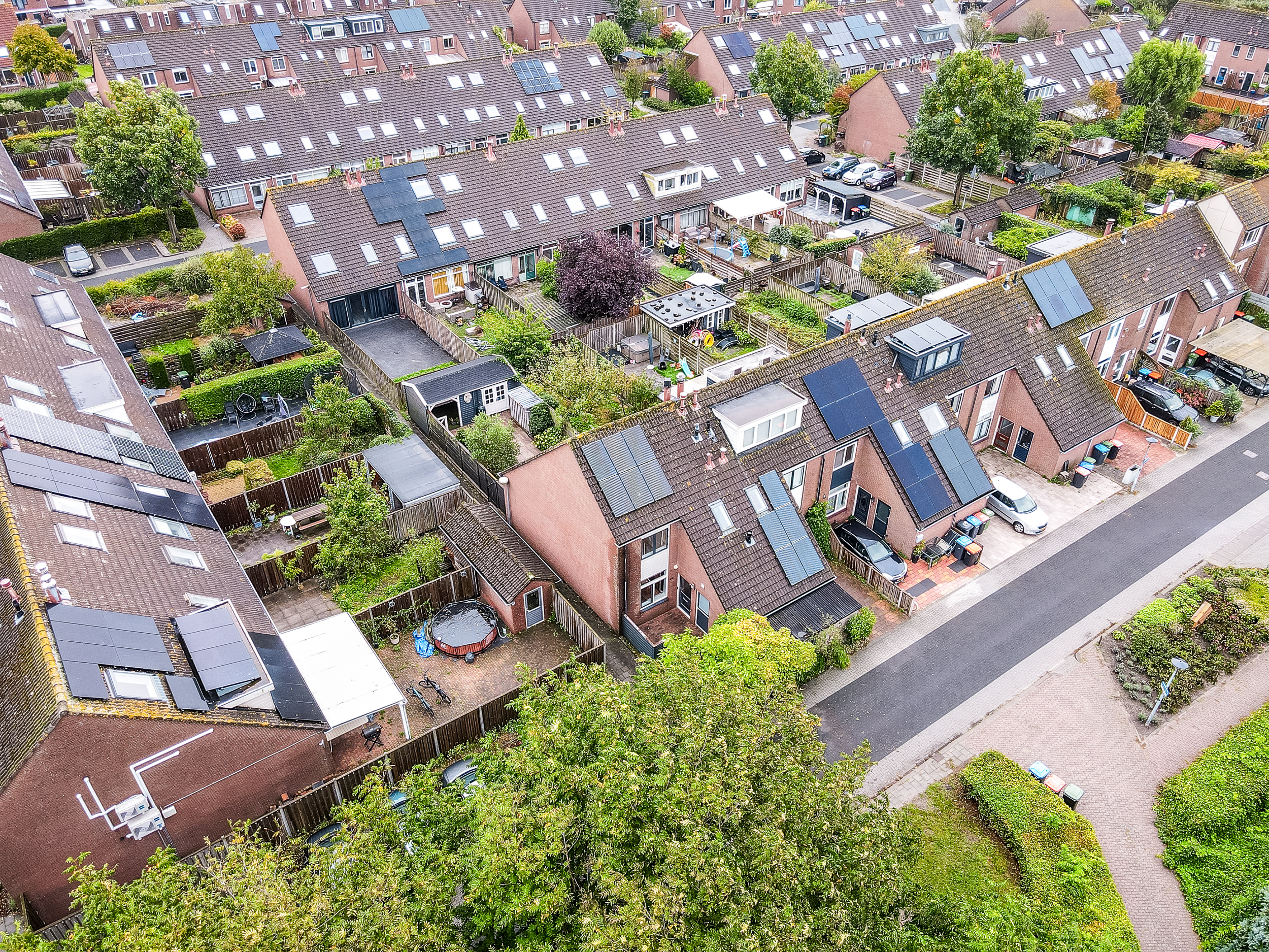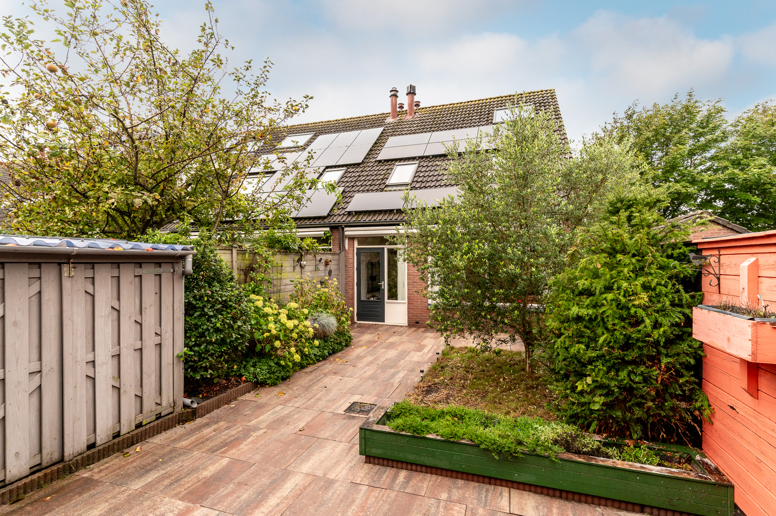 De achtertuin van circa 12 bij 6 meter is gelegen op het oosten en biedt volop zon in de ochtend en vroege middag. Dankzij de ligging aan het einde van de rij geniet u van extra privacy en rust. Daarnaast is de woning voorzien van 15 zonnepanelen, wat bijdraagt aan lage energielasten en duurzaam wonen.