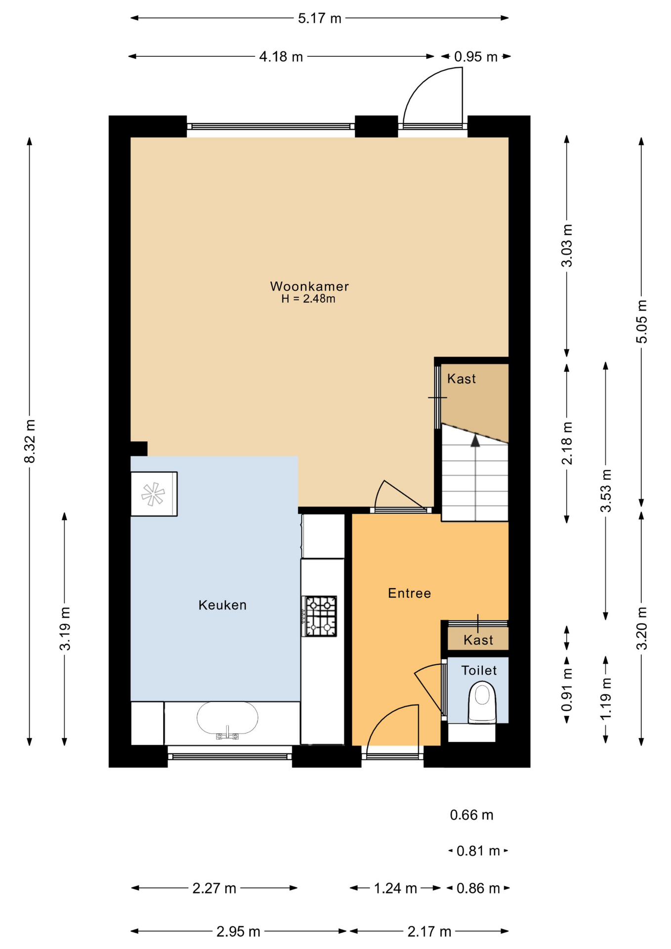 Entree/hal met de toiletruimte (2013), meterkast, garderobe, trapopgang naar de verdieping en toegang naar de woonkamer. Ruime tuingerichte woonkamer (5.17 m. breed) met grote raampartijen, een trapkast en een deur naar de tuin. Aan de voorzijde bevindt zich de keurige inbouwkeuken in L-opstelling, welke voorzien is van de volgende apparatuur; oven, vaatwasser, 4-pits gaskookplaat en een afzuigkap. Ruime opstelmogelijkheden voor een eettafel waar u heerlijk met uw familie kunt dineren. De begane grond is voorzien van een laminaatvloer.