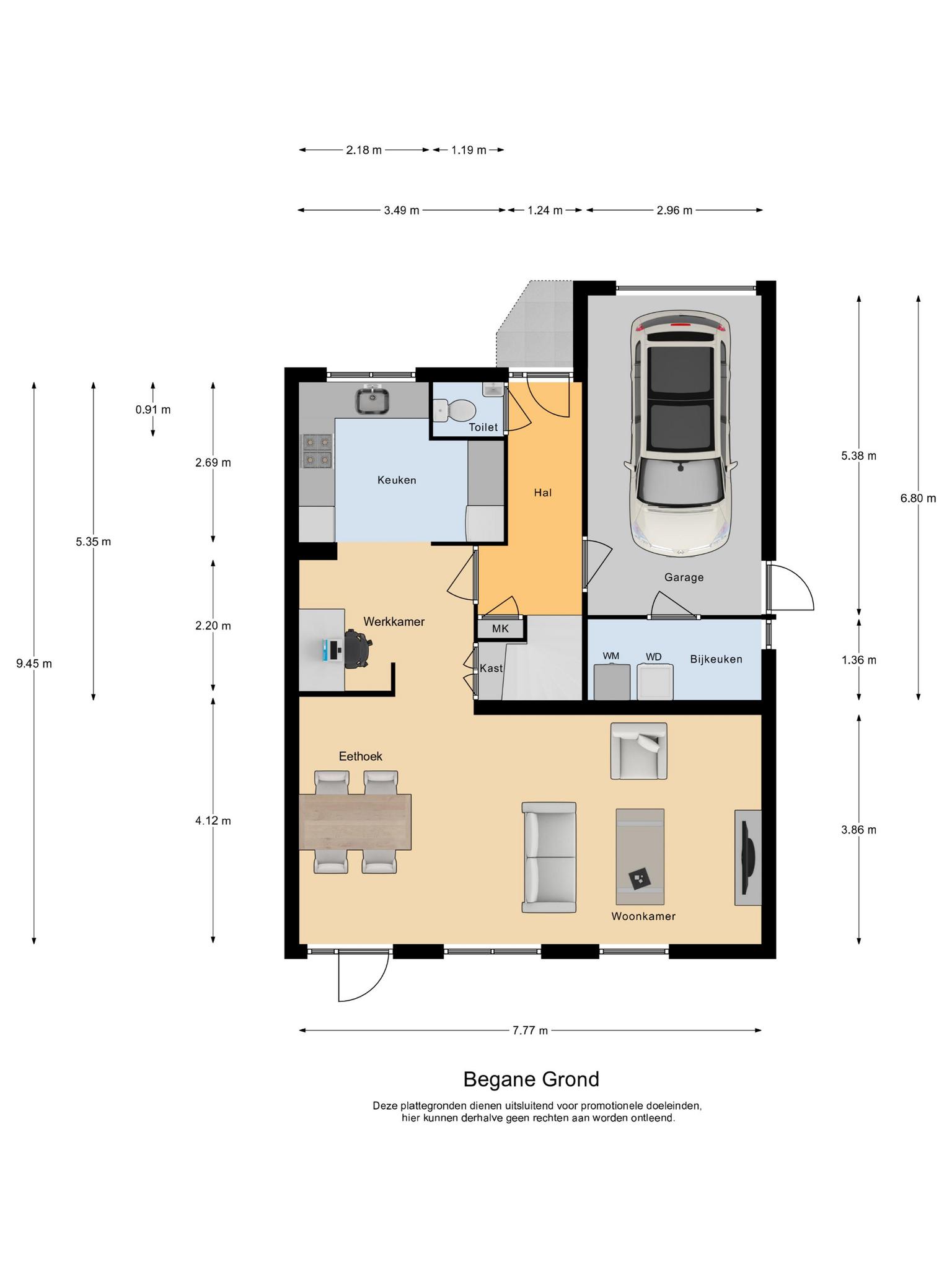 Entree/hal met de moderne toiletruimte (2019), meterkast, trapopgang naar de verdieping en toegang naar de woonkamer en de aangebouwde stenen garage, welke momenteel is opgedeeld in een riante bergruimte en een aparte bijkeuken/washok met de opstelling van de wasmachine en droger. Riante tuingerichte woonkamer (7.77 m. breed) met glad gestuukte wanden, verlaagd plafond met spots en grote raampartijen, welke een schitterend vrij uitzicht geven over uw tuin en het "Havendiep". Ruime opstelmogelijkheden voor een grote eettafel waar u heerlijk met uw familie kunt dineren. Aangrenzend een prettige werkruimte met aan de andere zijde ingebouwde kasten, afgewerkt met louvredeuren. Aan de voorzijde bevindt zich de fraaie inbouwkeuken (2011), welke is voorzien van de volgende apparatuur; koelkast, vriezer, 4-pits inductiekookplaat en een afzuigkap. De begane grond is voorzien van een fraaie PVC-vloer (2019) in tegelmotief met vloerverwarming.