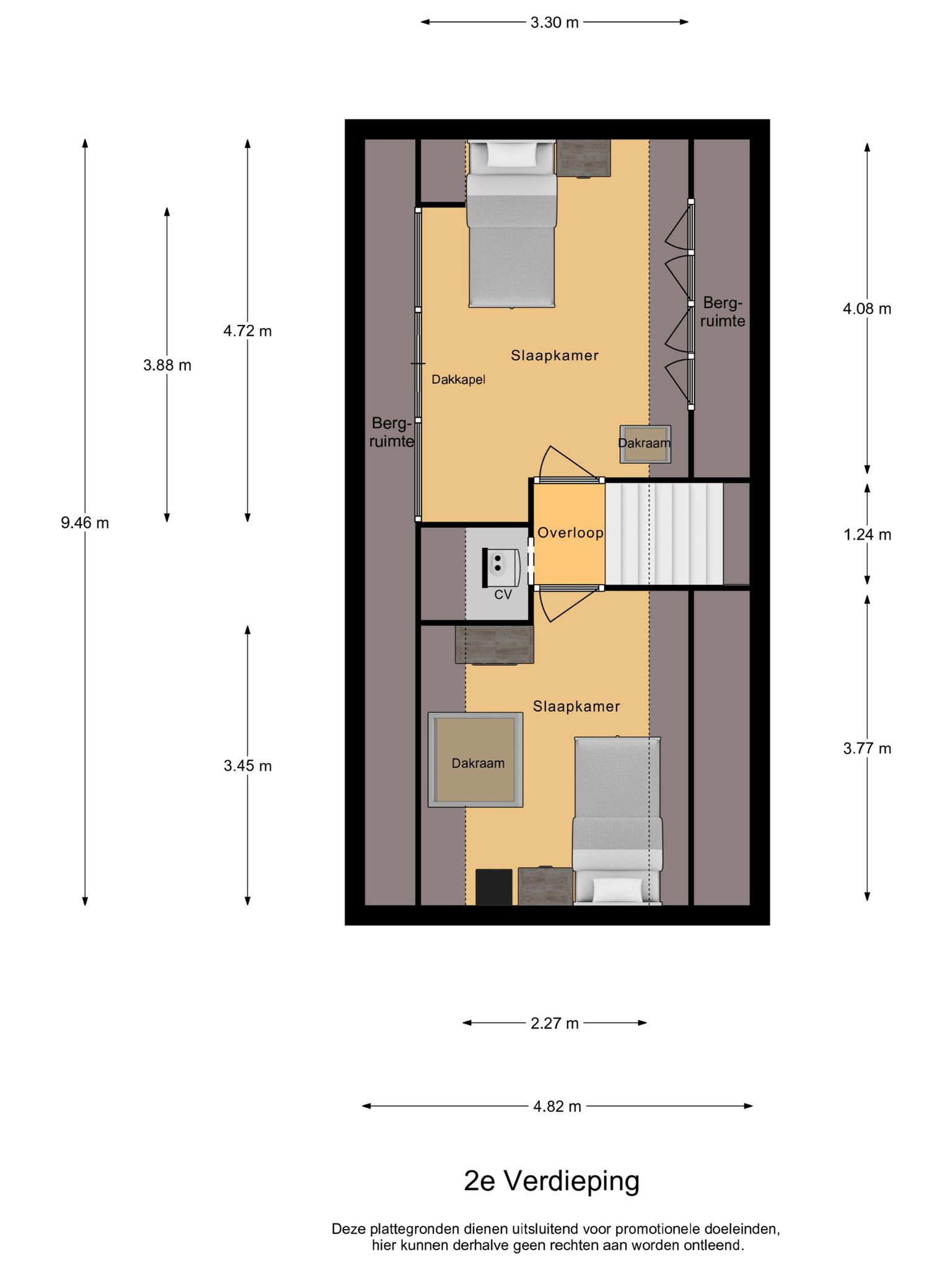 Overloop met bergkast met daarin de cv-installatie (2021), de mechanische ventilatie box (2016) en toegang tot 2 slaapkamers (ca. 14 en 8 m2), waarbij de slaapkamer aan de voorzijde profiteert van een dakkapel met vernieuwde kunststof kozijnen (2015).
