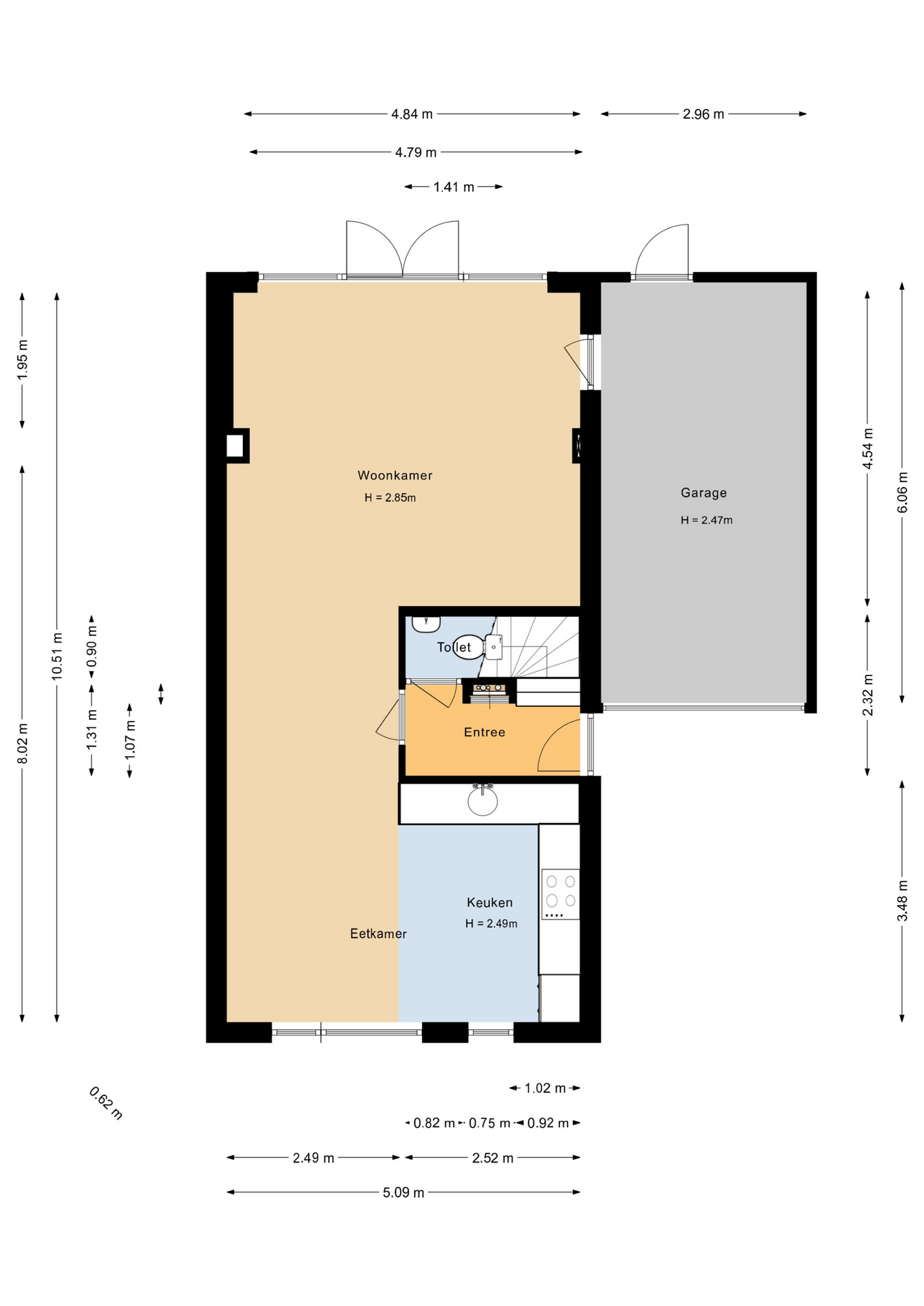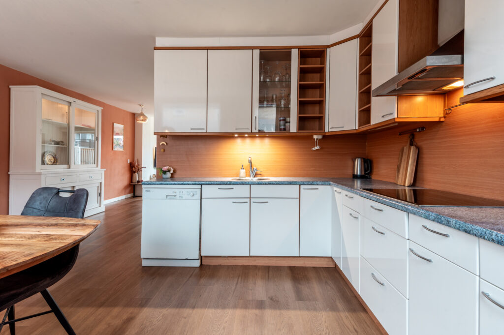 Entree/hal met de meterkast (met 3-fase aansluiting | 2022), toiletruimte, trapopgang naar de verdieping en toegang naar de woonkamer. Een heerlijke tuingerichte en uitgebouwde woonkamer van 5,09 meter breed met grote raampartijen, een airco (2022 | warmte/koelen) en middels dubbele openslaande deuren toegang naar de tuin. Vanuit de woonkamer is de aangebouwde stenen garage (ca. 18 m2) te bereiken met een kanteldeur aan voorzijde en een tuindeur aan de achterzijde. Aan de voorzijde bevindt zich de woonkeuken met de L-vormige inbouwkeuken, welke voorzien is van de volgende apparatuur; koelkast, vaatwasser, combi-oven, 4-pits inductiekookplaat en een afzuigkap, waarbij alle inbouwapparatuur is vernieuwd in augustus 2022. Ruime opstelmogelijkheden voor een grote eettafel waar u heerlijk met uw familie en vrienden kunt dineren. De begane grond is voorzien van een fraaie PVC-vloer (2024) met infrarood vloerverwarming (2024).