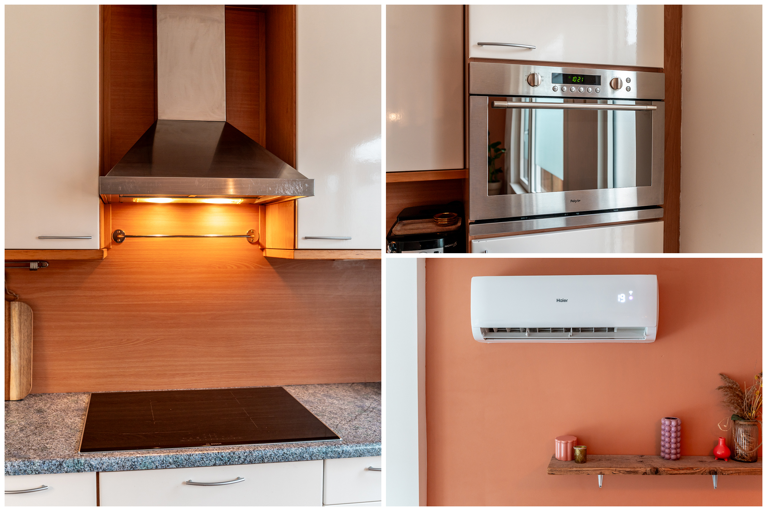 * Uitgebouwde woonkamer met airco (2022 | warmte/koelen) en infrarood vloerverwarming (2024)