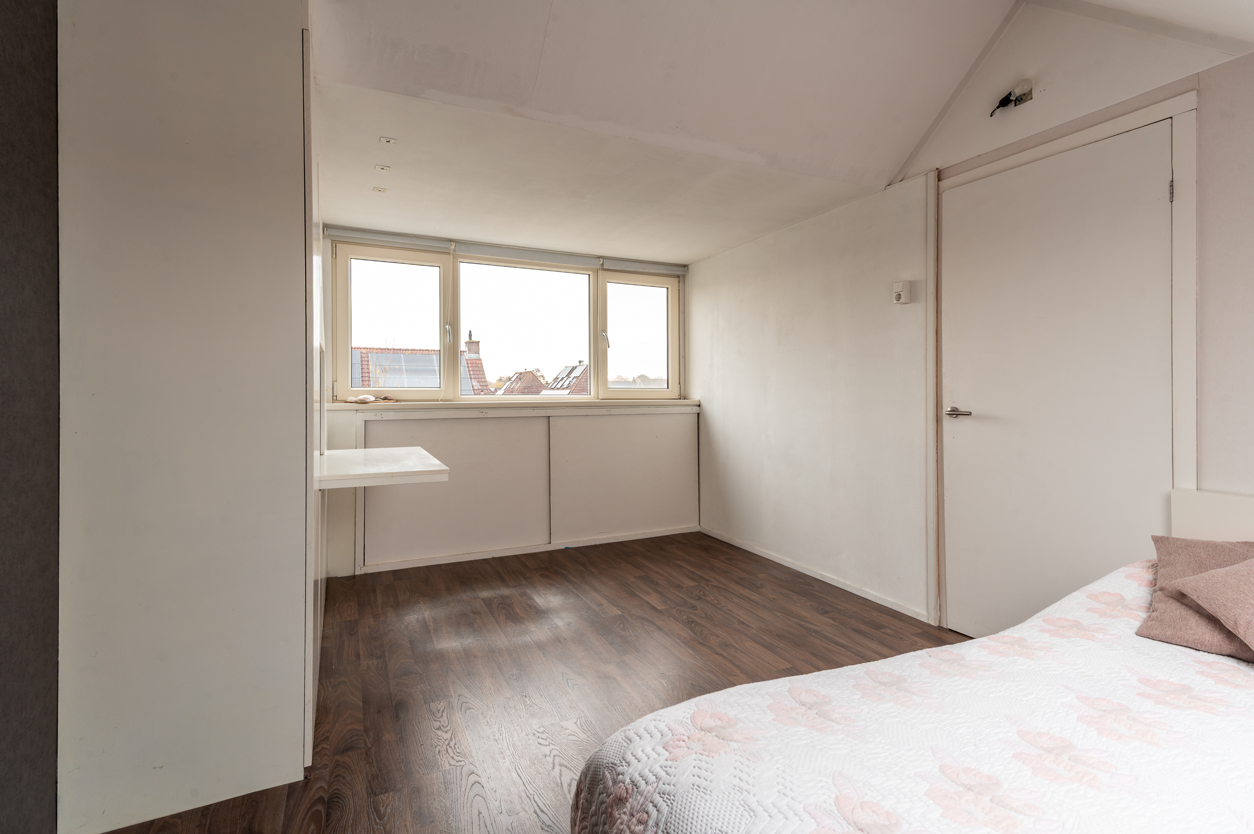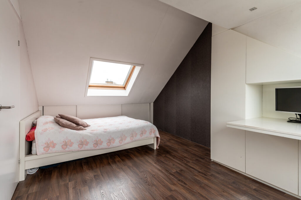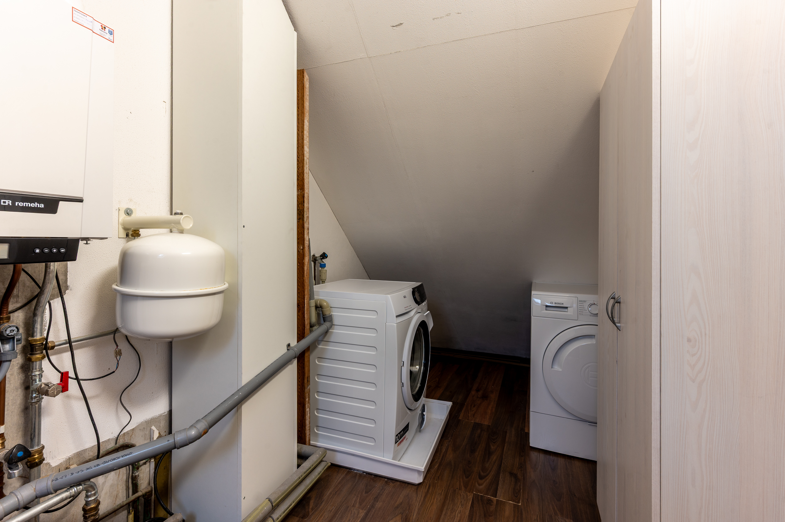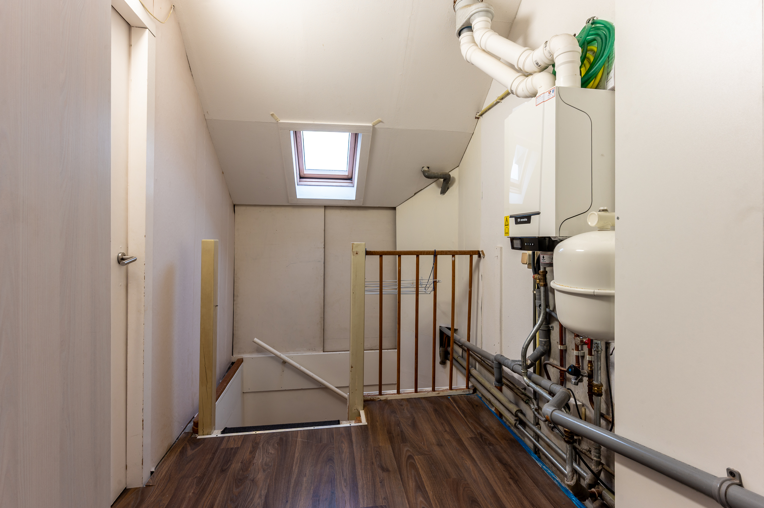 Overloop met de opstelplaats van de cv-ketel (2019), de mechanische ventilatie box en veel praktische bergruimte. Toegang tot de ruime 4e slaapkamer (ca. 13 m2) met een dakraam en een kunststof dakkapel (2014). De verdieping is voorzien van een laminaatvloer.