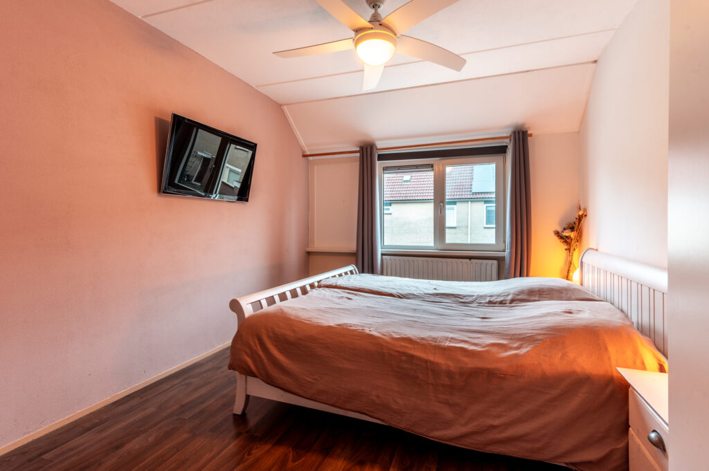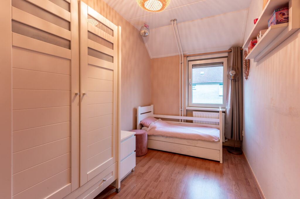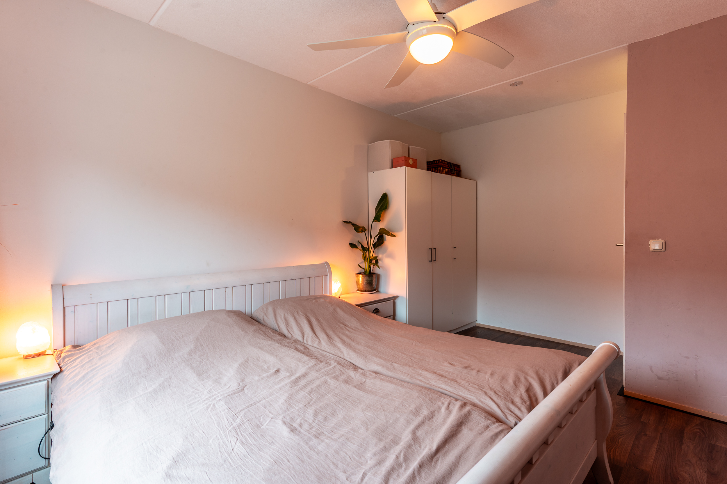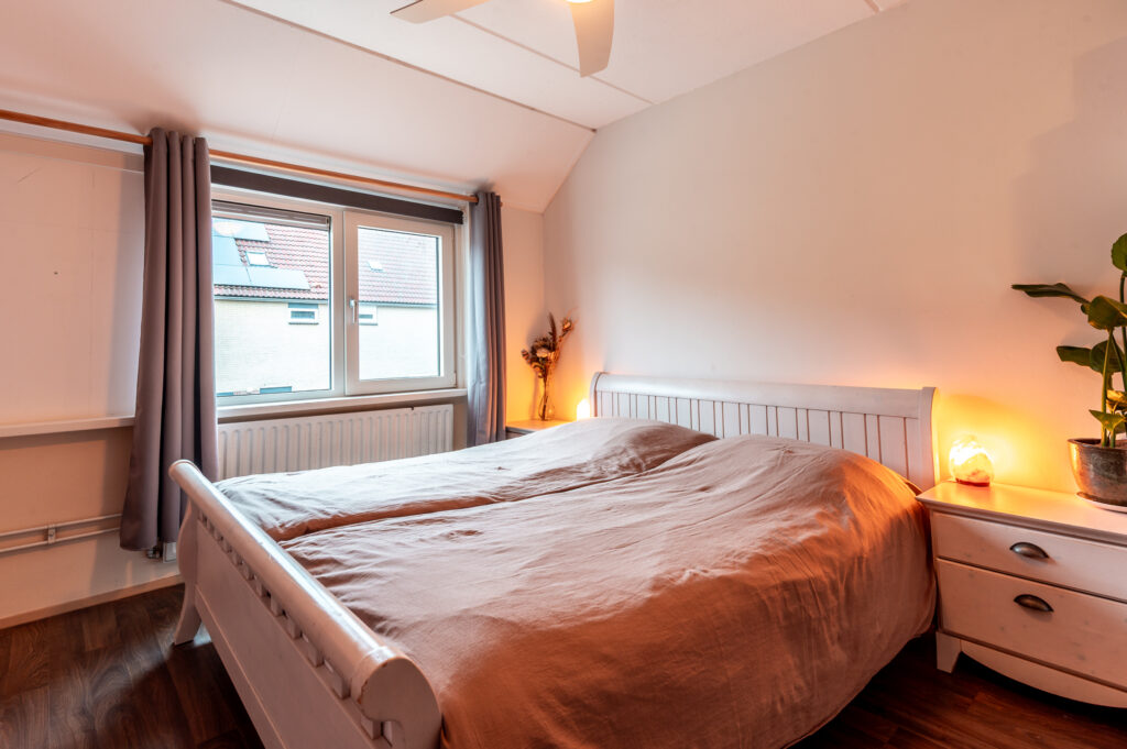 Overloop met de opstelplaats van de cv-ketel (2019), de mechanische ventilatie box en veel praktische bergruimte. Toegang tot de ruime 4e slaapkamer (ca. 13 m2) met een dakraam en een kunststof dakkapel (2014). De verdieping is voorzien van een laminaatvloer.