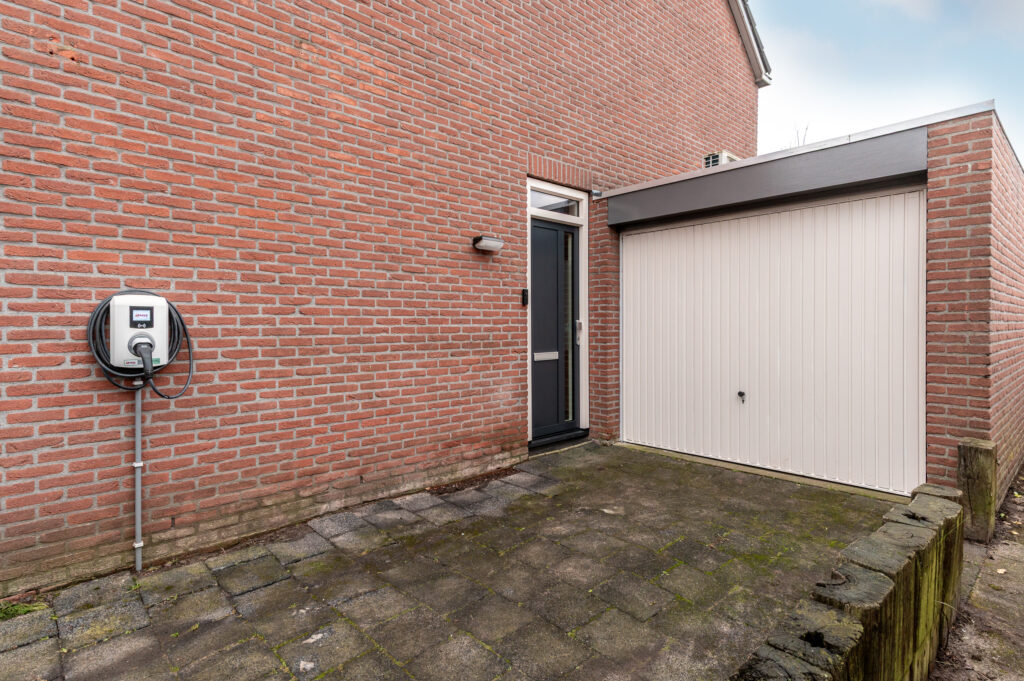 De voortuin is voorzien van bestrating, siergrind, een laadpaal (ter overname) en biedt parkeergelegenheid voor uw auto op eigen terrein.