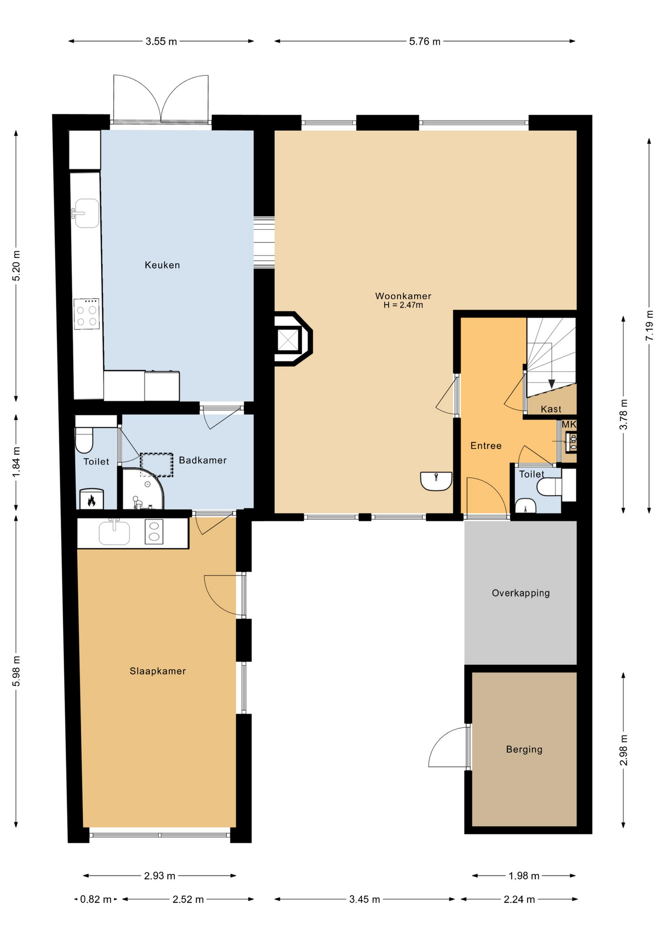 Begane grond: Voortuin met toegang tot de stenen berging en de entree van de woning. Hal met toilet voorzien van vloerverwarming, meterkast, trapopgang en toegang tot de woonkamer. Dankzij de uitbouw is de keuken niet meer in de woonkamer wat een hoop ruimte geeft, en dankzij de ramen tot aan de vloer veel daglicht! De woonkamer beschikt over een comfortabele houtkachel. De royale woonkeuken biedt ruimte om heerlijk na te tafelen en via de openslaande deuren is de royale achtertuin te bereiken. De keuken geeft toegang tot de bad- en slaapkamer op de begane grond.
