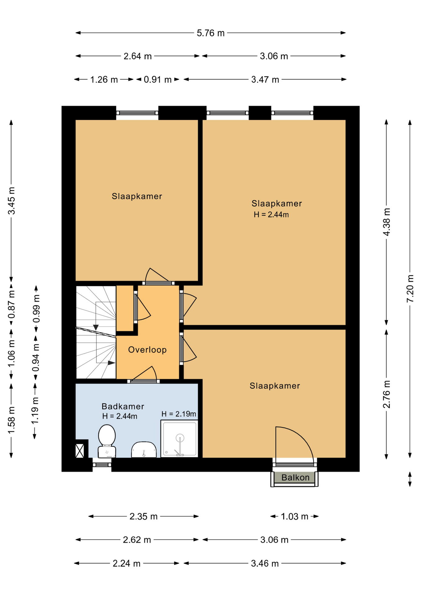 Op de eerste verdieping bevinden zich drie ruime slaapkamers, ideaal voor gezinnen met kinderen of voor het inrichten van een werk- of hobbyruimte. De vierde slaapkamer bevindt zich op de tweede verdieping, een perfecte plek voor bijvoorbeeld een tiener of als extra werkruimte. De badkamer is compact maar functioneel, uitgerust met een wastafel, toilet en douche.