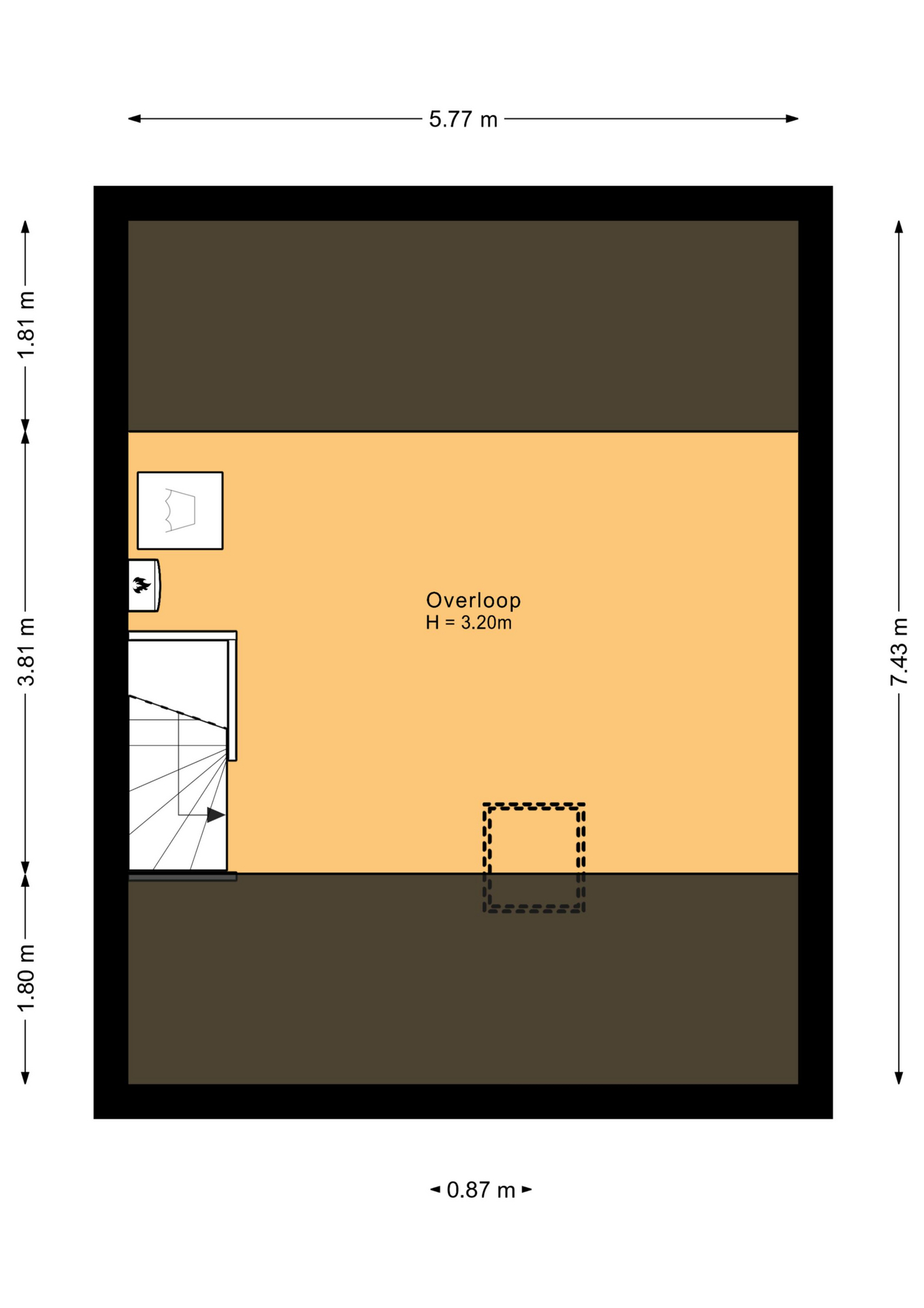 Ruime vierde (slaap)kamer (ca. 22 m²) met dakraam, opstelling wassen-/drogen en opstelling CV-ketel.