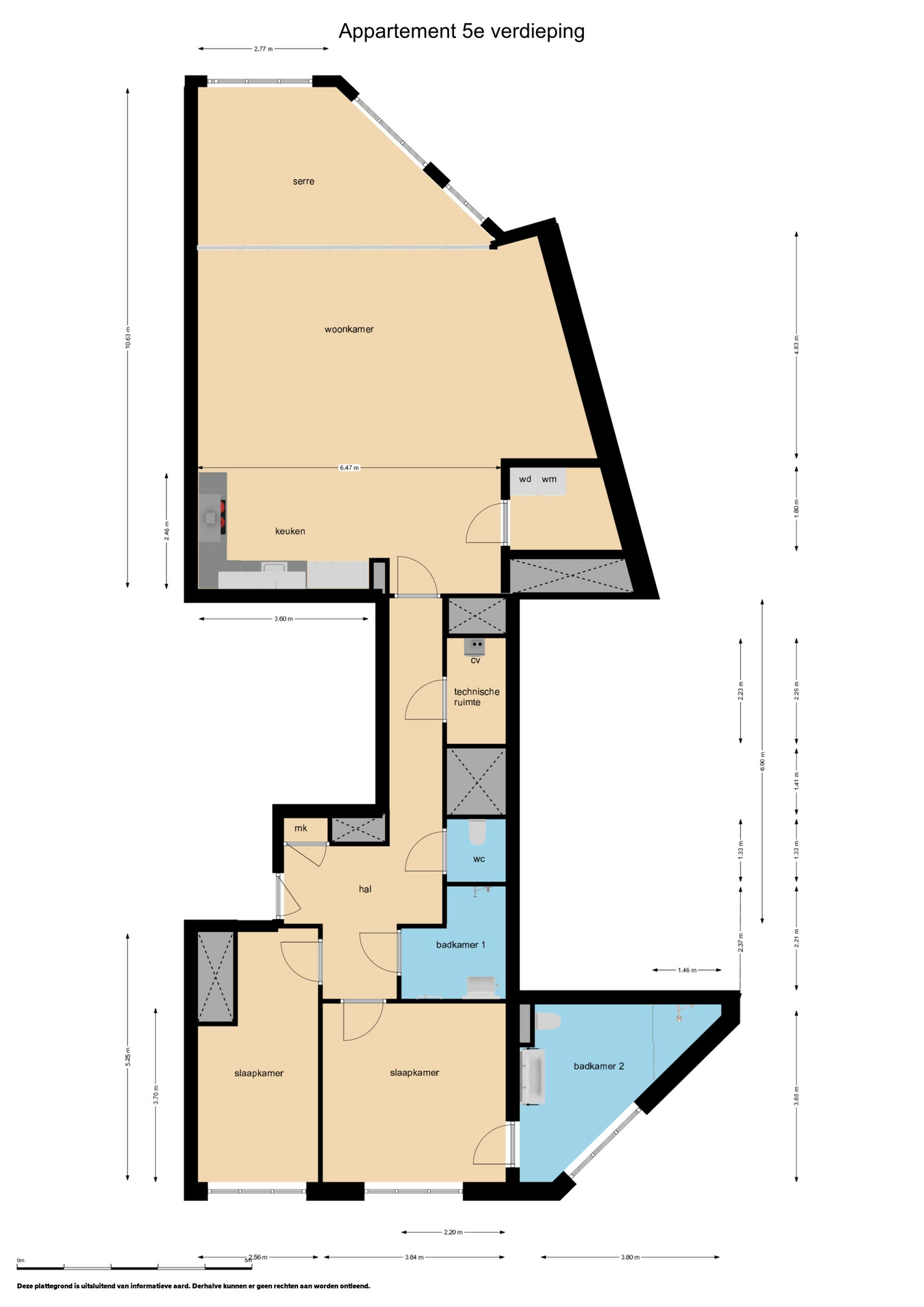 Entree; hal met meterkast, toilet, twee slaapkamers, badkamer, technische ruimte en doorgang naar de woonkamer; twee slaapkamers van respectievelijk 11,4- en 14,2m², waarbij de grootste slaapkamer beschikt over een eigen luxe afgewerkte badkamer met volledige betegeling, een wastafelmeubel, spiegel met verlichting, toilet en ruime inloopdouche met glazen douchewand en naar binnen draaiende douchedeur; de tweede badkamer is vanuit de hal bereikbaar en eveneens volledig betegeld en voorzien van wastafel en douche; de technische ruimte beschikt naast de CV (Intergas Xtreme 36, bouwjaar: 2021) en de warmte-terug-win-unit ook over bergruimte; de woonkamer meet inclusief de serre en het keukengedeelte 70m²; de ramen zijn elektrisch te bedienen, zodat u in de zomer heerlijk van de buitenlucht kunt genieten; moderne keuken in hoekopstelling welke is voorzien van een inductiekookplaat, rvs-schouw, volledig geïntegreerde vaatwasser, een oven, koelkast en ladenvriezer; naast de keuken bevind zich een bijkeuken/bergruimte met witgoedaansluitingen en bergruimte.