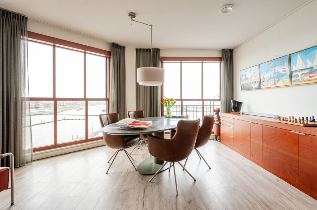 Exclusief wonen met een panoramisch uitzicht over het water en de levendige haven. Vanuit de woonkamer en serre geniet u dagelijks van een voortdurend veranderend decor van passerende boten en schitterende zonsondergangen.