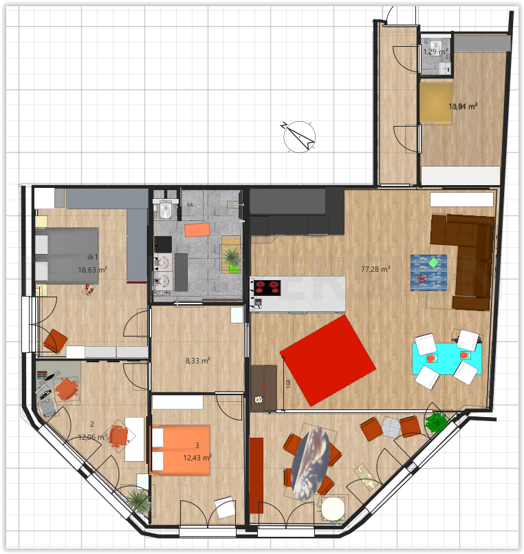 Entree, hal, modern toilet met fontein, bergruimte met opstelling voor wassen en drogen separate ruimte voor de Cv-ketel en de Warmteterugwinning installatie. Ruime living (ca.75 m²) waar ook de moderne open keuken. Via de tweede hal, komt u in de slaapkamers: 1 (ca. 15 m²), slaapkamer 2 (ca. 10 m²), slaapkamer 3 (ca. 8 m²). In de grootste slaapkamer is een luxe kastenwand op maat gemaakt, die heel veel bergruimte biedt.