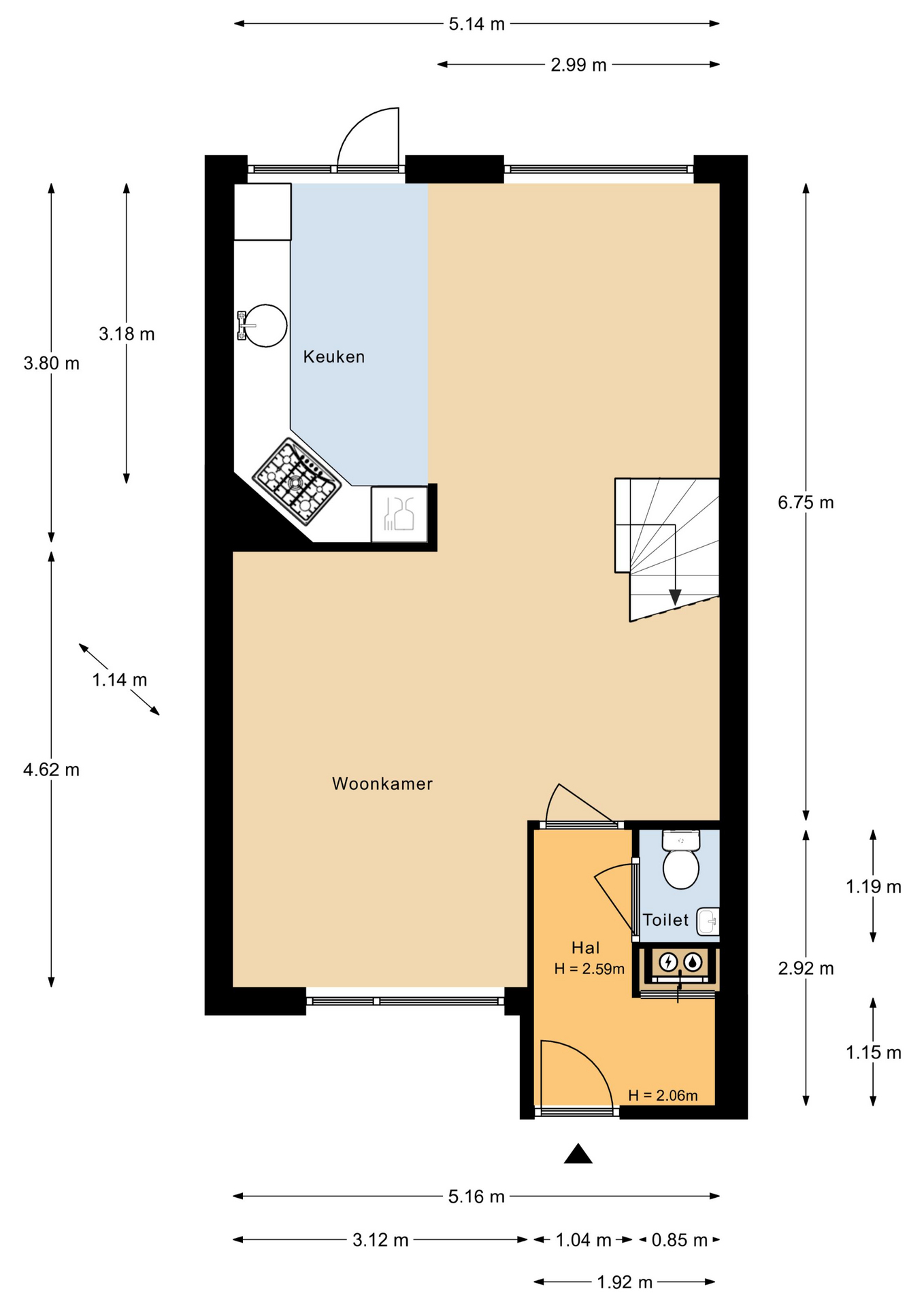 Entree, hal, toilet met fonteintje, lichte en ruime woonkamer (ca. 20 m²), trapopgang naar de eerste verdieping, open keuken voorzien van inbouwapparatuur, deur naar de achtertuin.