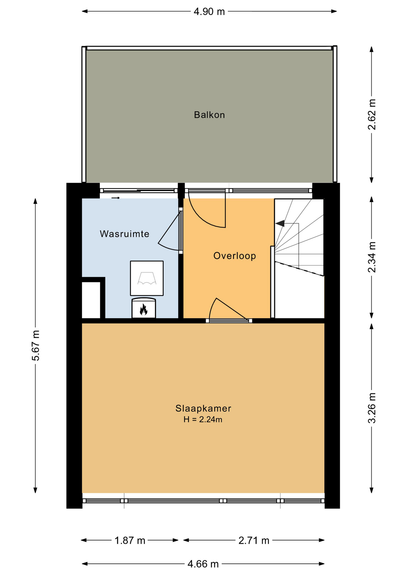 Tweede verdieping: Ruime verdieping met overloop, aparte ruimte voor de CV-ketel Vaillant ecoTEC HR (2023) en de wasmachine aansluiting; ruime vierde slaapkamer van ca. 15m²; toegang tot het dakterras op het westen van ca. 13m²