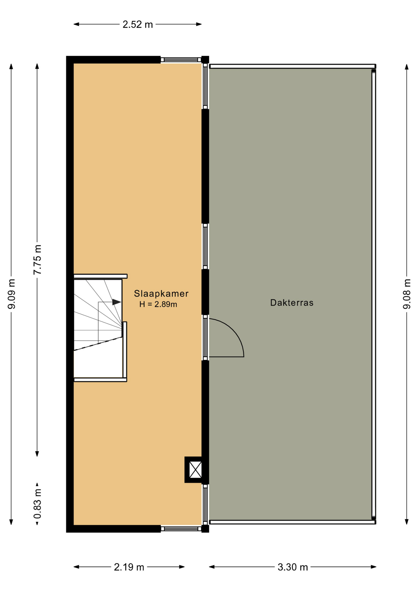 Vierde slaapkamer (ca. 21 m²) met toegang naar het dakterras (ca. 30 m²)