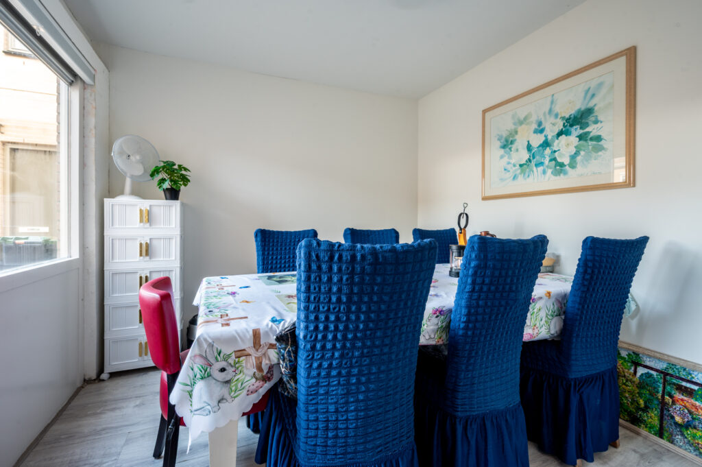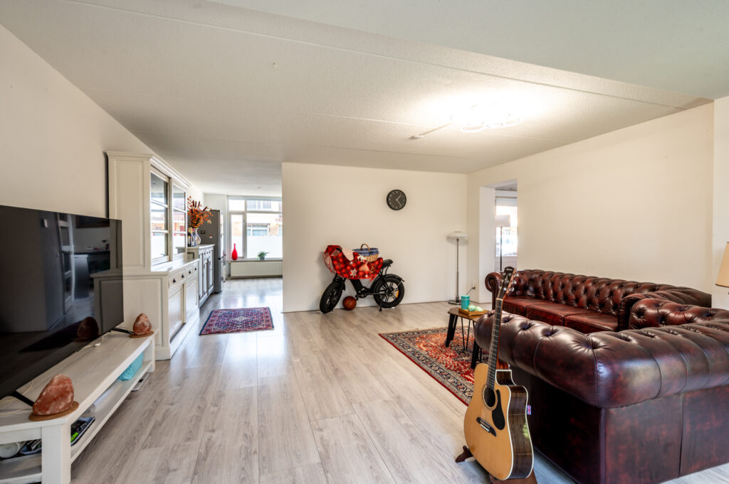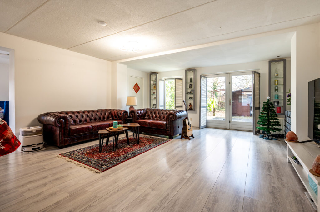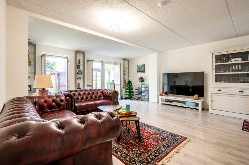 Binnenin de woning komt de lichte en open indeling goed tot zijn recht. De woonkamer is met circa 21 m² een prettige ruimte om tot rust te komen. De openslaande deuren geven toegang tot de achtertuin, waar u in alle privacy kunt genieten . De eetkamer van circa 9 m², gescheiden van de woonkamer, biedt volop ruimte voor gezellige diners of een informele werkplek.