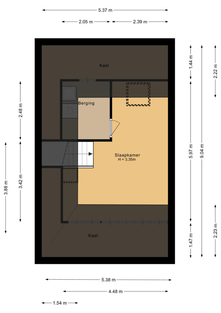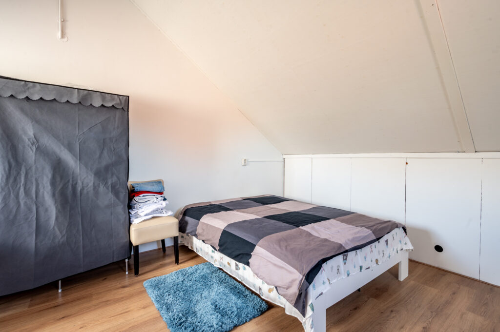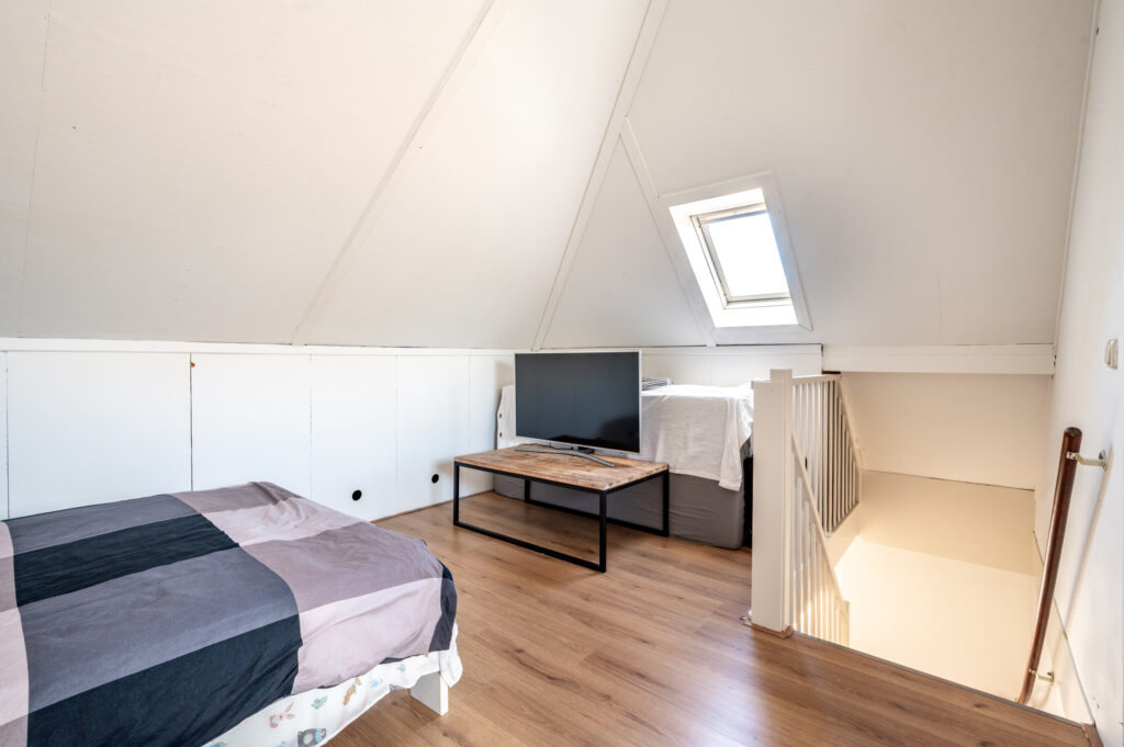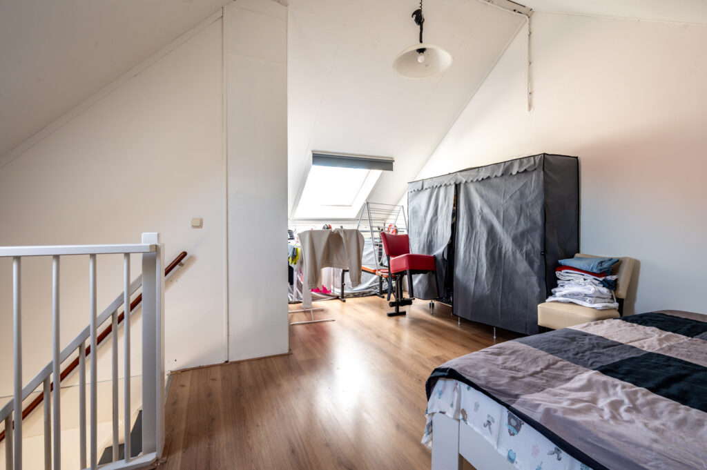 Slaapkamer 4 (ca. 15 m²) met dakraam en opbergruimte achter de knieschotten, aparte ruimte met opstelling CV-ketel en wassen-/drogen.