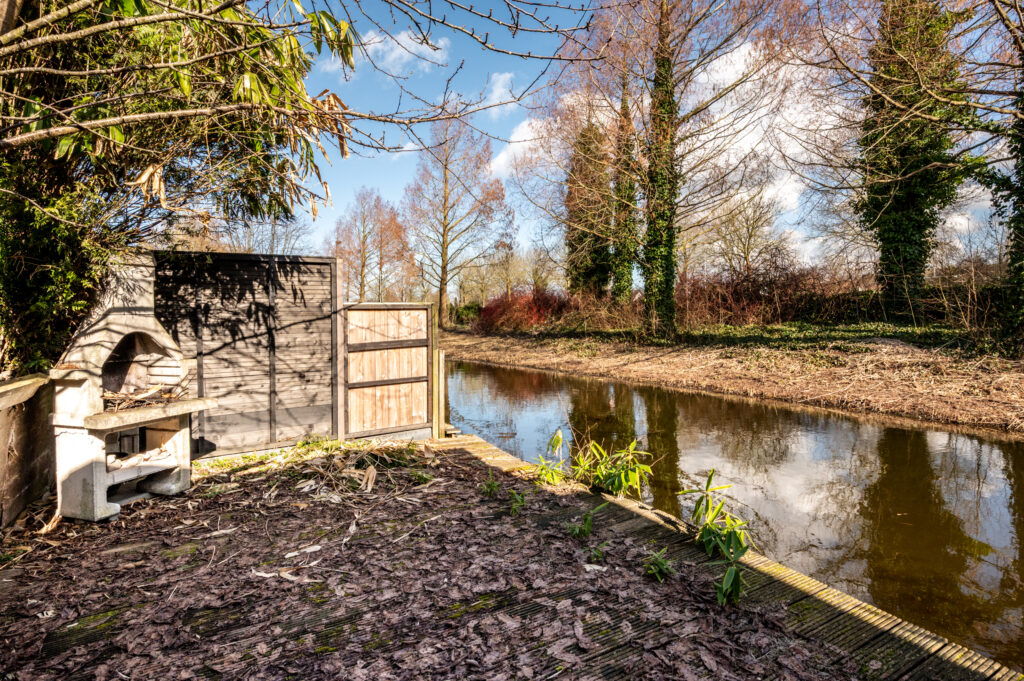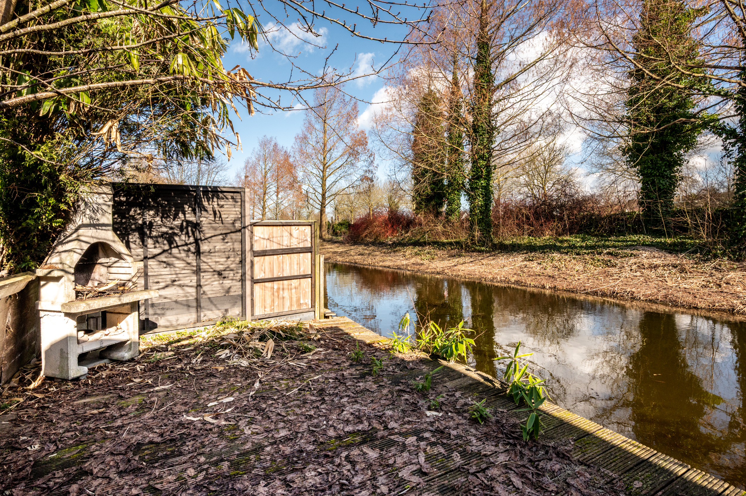 De achtertuin bevindt zich direct aan het water. De tuin ligt op het oosten, waardoor u hier al vroeg in de ochtend van de zon kunt genieten. Met een oppervlakte van 159 m² biedt de tuin genoeg ruimte voor een terras, een speelplek voor kinderen, of misschien zelfs een moestuin. Het water dat achter de woning stroomt, voegt een extra dimensie toe aan de sfeer en zorgt voor een gevoel van ruimte.