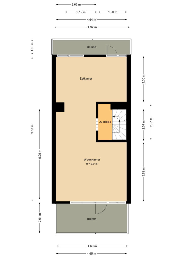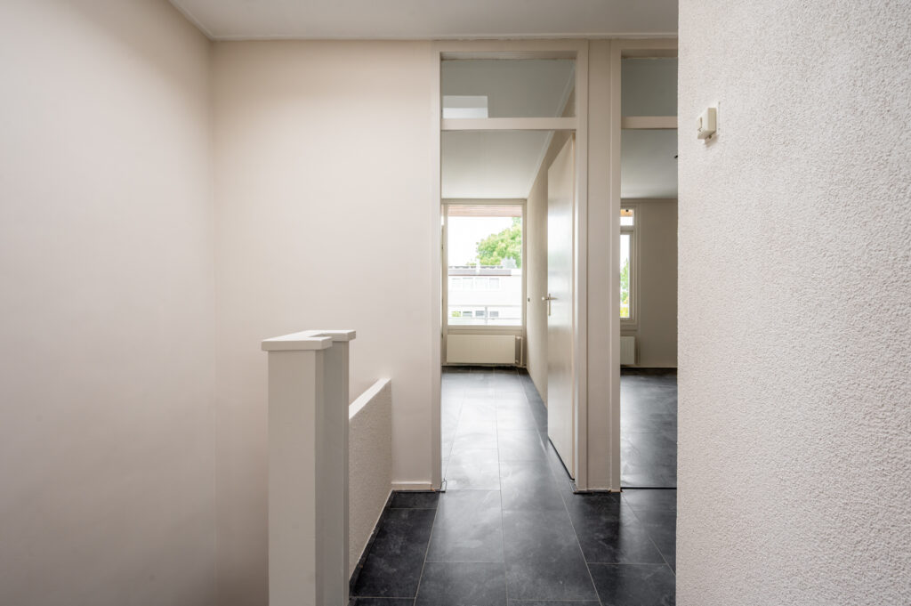 Een heerlijke woonetage van ca. 45 m2 met zowel een balkon aan de voorzijde (zuid / ca. 9 m2) als een balkon aan de achterzijde (noord / ca. 5 m2). Voorheen was de keuken aan de achterzijde gesitueerd, deze is door de huidige eigenaren verplaatst naar de begane grond. De verdieping is voorzien van een fraaie laminaatvloer.