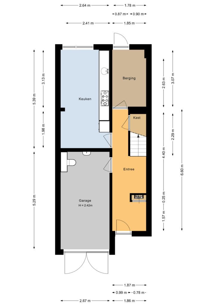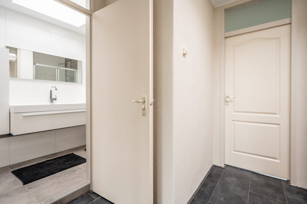 Entree/hal met de meterkast, garderobe, trapopgang naar de verdieping, bergkast en toegang tot diverse vertrekken. Aan de voorzijde treft u de inpandige garage (ca. 14 m2) met de toiletruimte, wastafel, de wasmachineaansluiting en dubbele openslaande garagedeuren naar de voortuin. Aan de achterzijde treft u de fraaie inbouwkeuken, welke voorzien is van de volgende apparatuur; koelkast, vaatwasser, combi-oven, 5-pits gaskookplaat en een afzuigkap. Ruime opstelmogelijkheden voor een eettafel, waar u heerlijk met vrienden en familie kunt dineren. Kamer (ca. 6 m2) met een deur naar de tuin. De voorbereidingen voor gelijkvloers wonen zijn reeds getroffen, waardoor mantelzorg, dubbele bewoning of een kangoeroewoning tot de mogelijkheden behoort. De begane grond is voorzien van een plavuizen vloer.