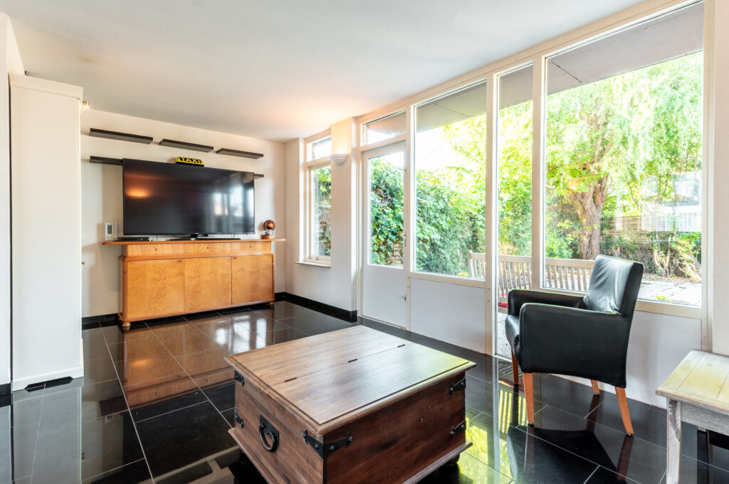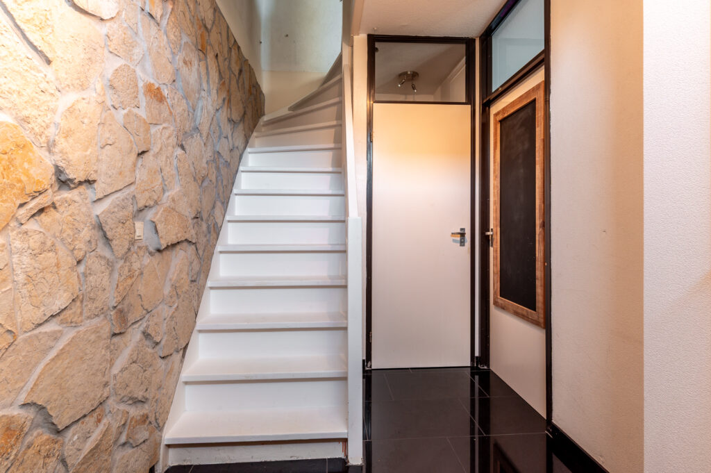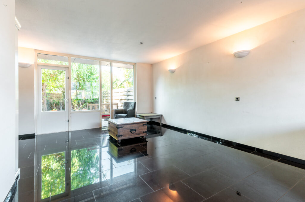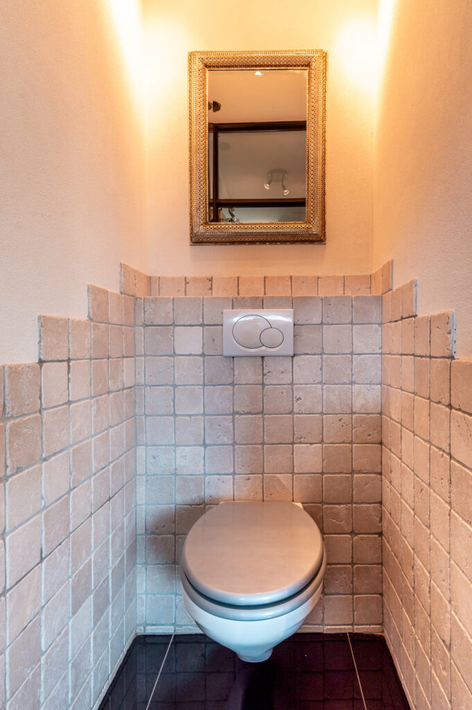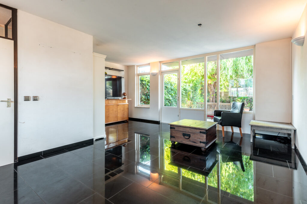 * De begane grond is voorzien van een moderne tegelvloer met vloerverwarming
