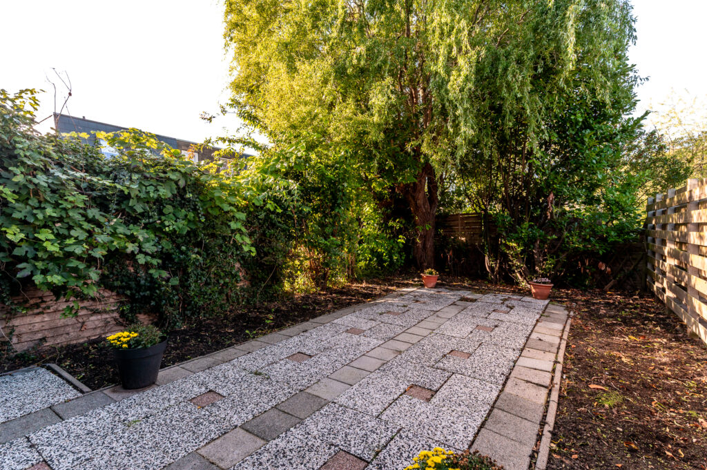 De verzorgd aangelegde tuin is gelegen op het zuidwesten en voorzien van een groot terras met bestrating, een border voor bomen en beplanting en wordt omheind middels schuttingen. De tuin is onderhoudsarm aangelegd en geeft veel privacy!